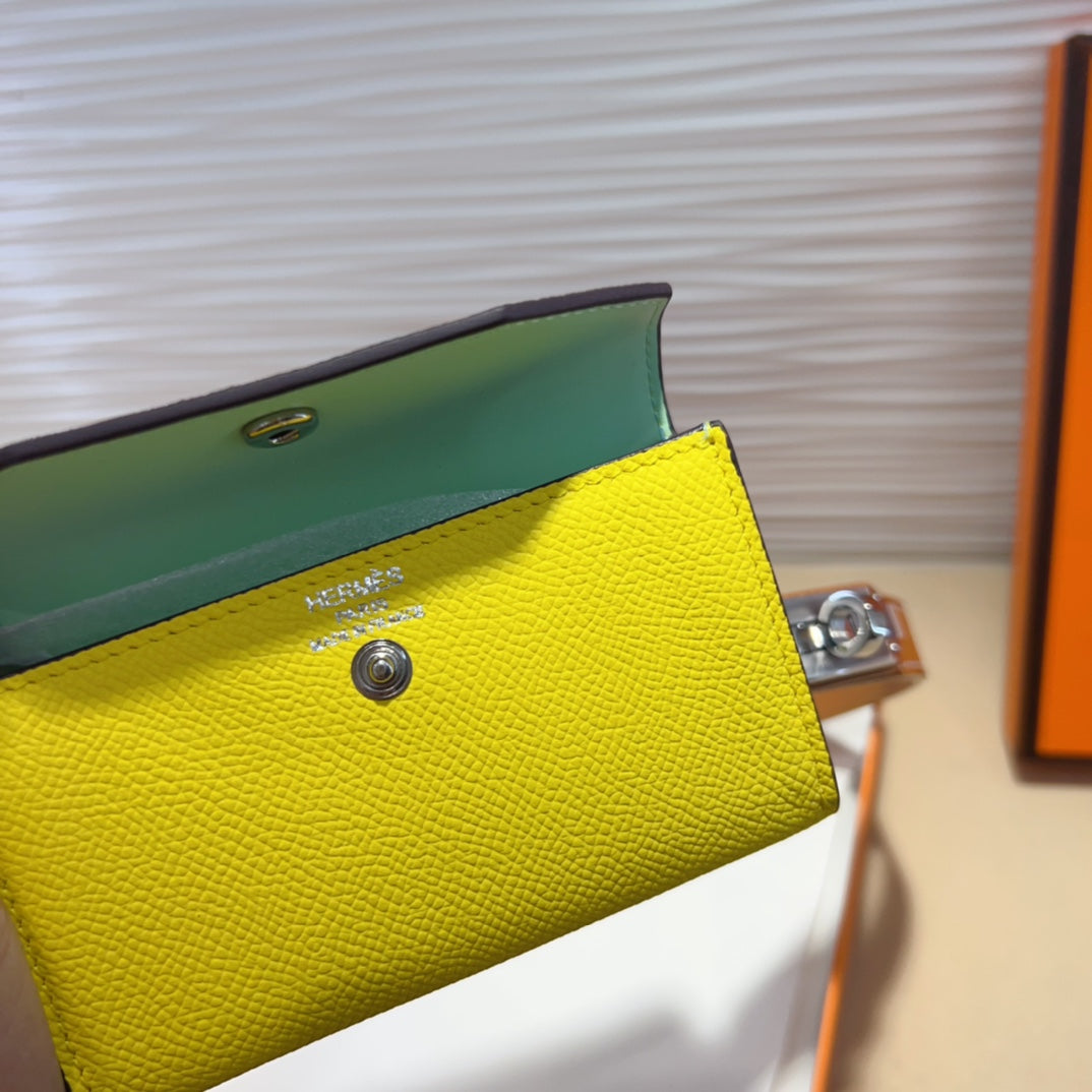 HM KELLY LEMON YELLOW POCKET 18MM BELT CINNAMON BROWN LEATHER GOLD HARDWARE
