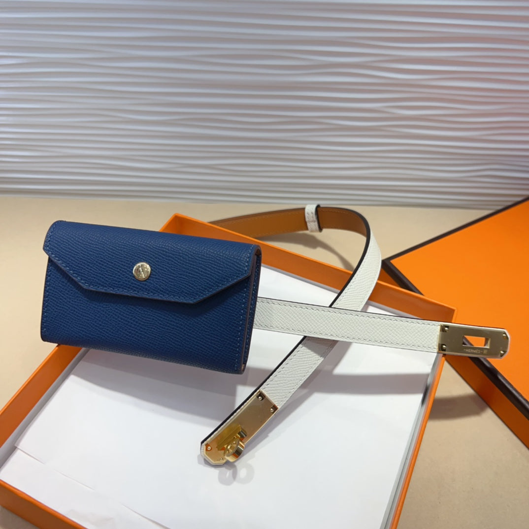 HM KELLY VIOLET PURPLE POCKET 18MM BELT WHITE LEATHER GOLD HARDWARE
