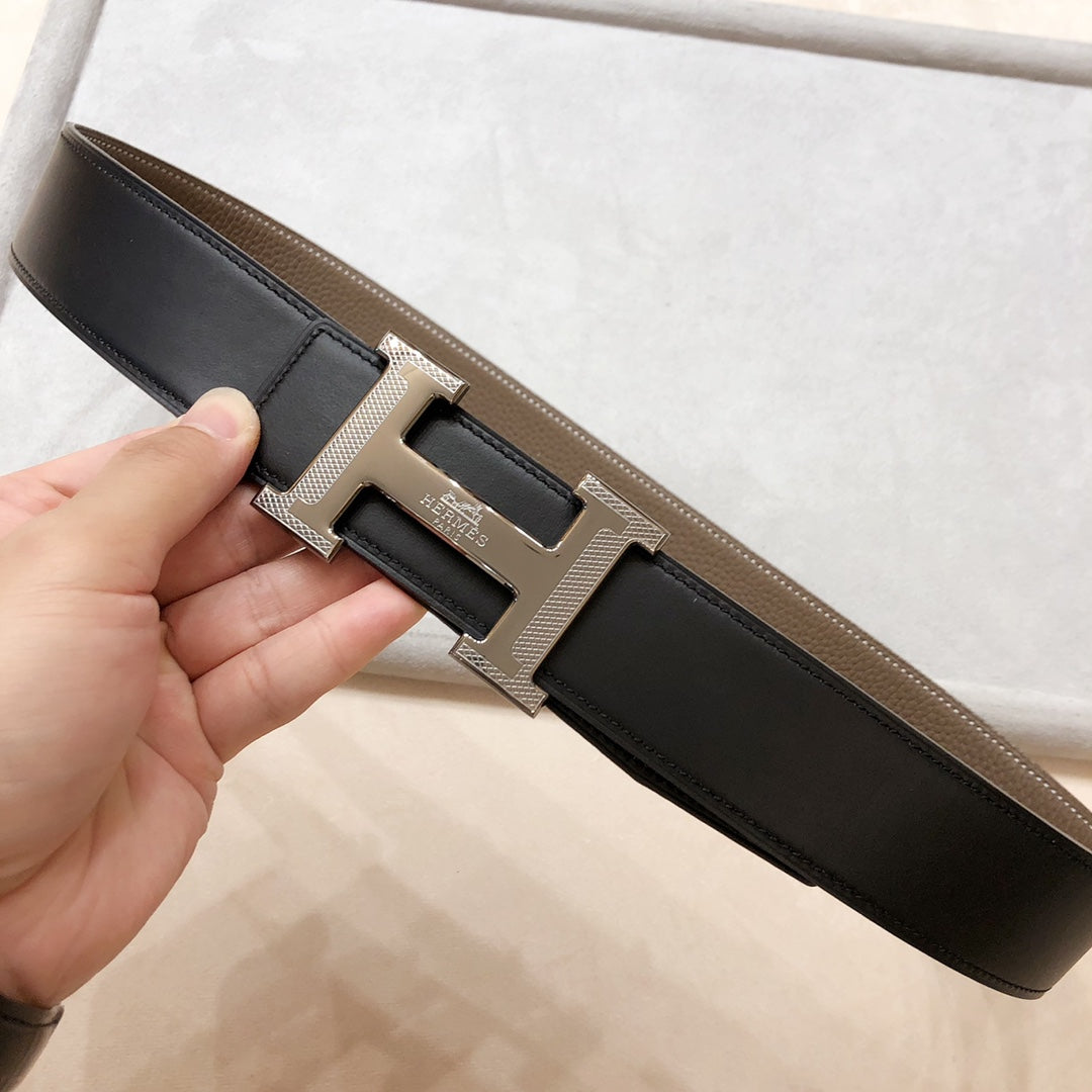 HM H D'ANCRE BELT BUCKLE & REVERSIBLE BLACK LEATHER STRAP 38 MM GREY SILVER HARDWARE