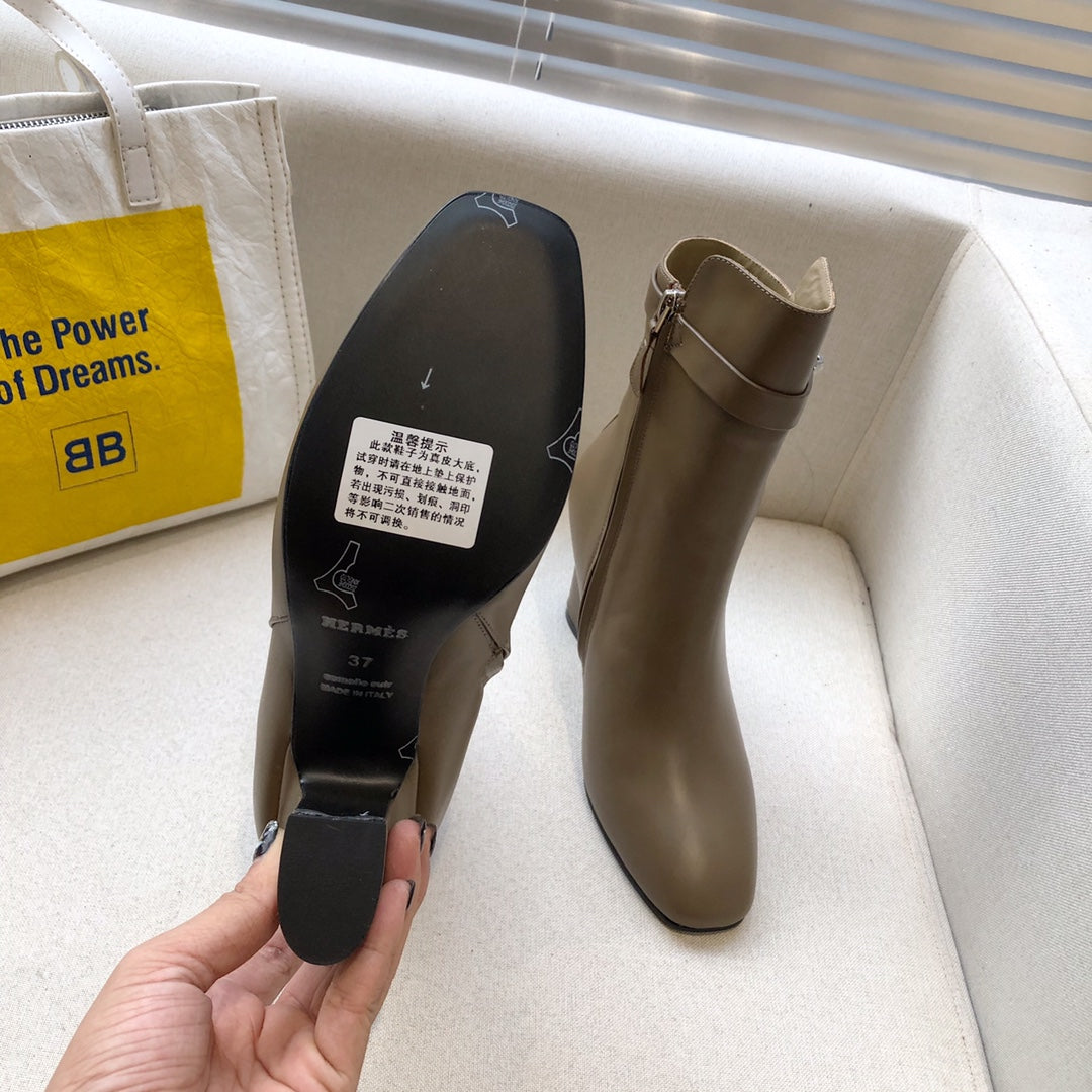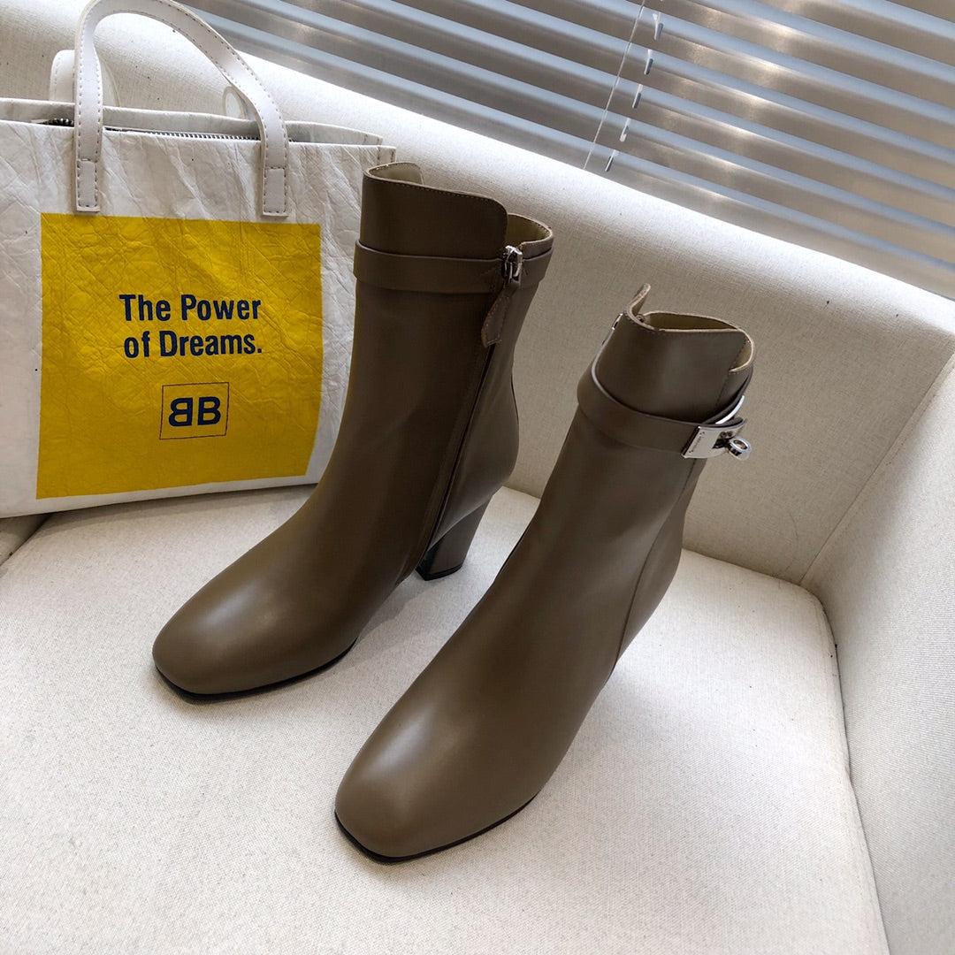 HM Classic Kelly High-Heeled Boots Brown Taupe Cowhide 546203