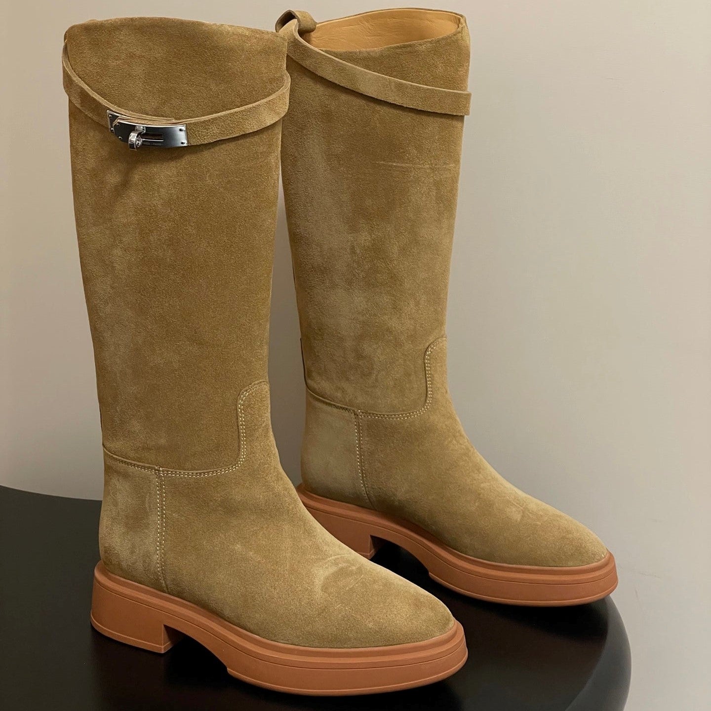 HM Jumping Boots Light Tan Kelly Buckle Suede 423266