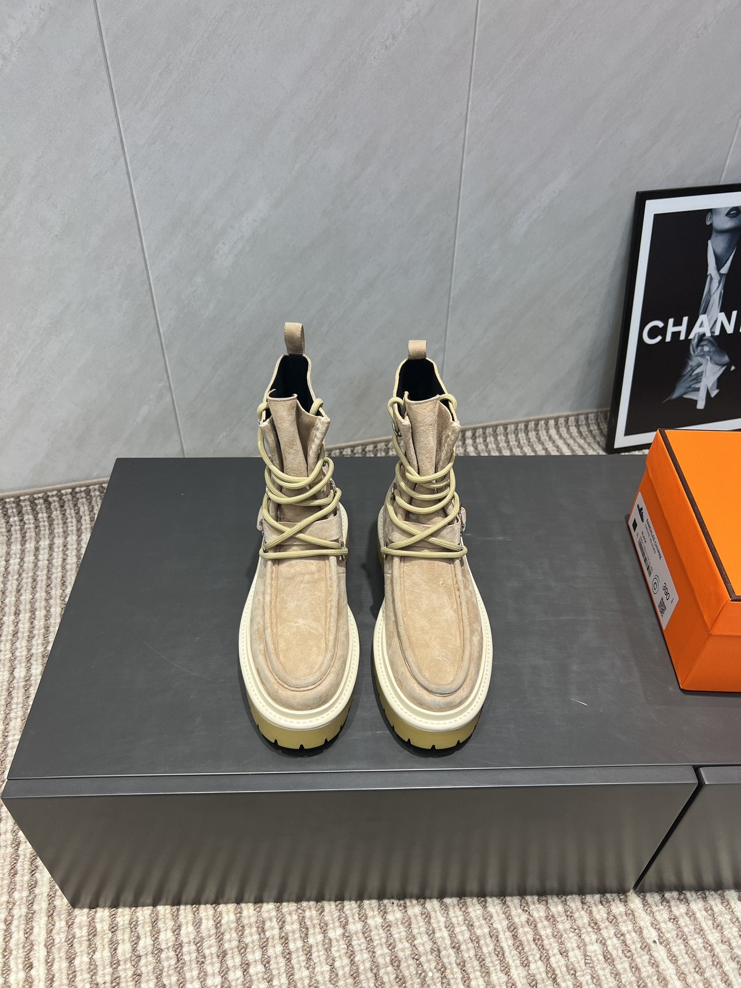 HM Lace Up Boots 25mm Belt Buckle Taupe Suede