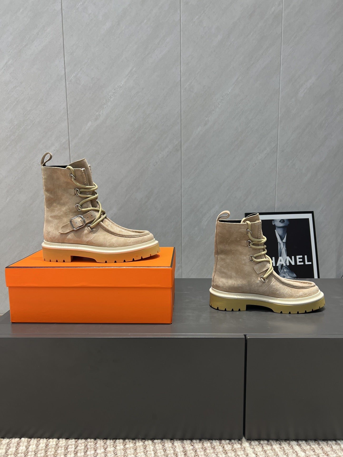HM Short Boots 25mm Kelly Buckle Light Beige Suede