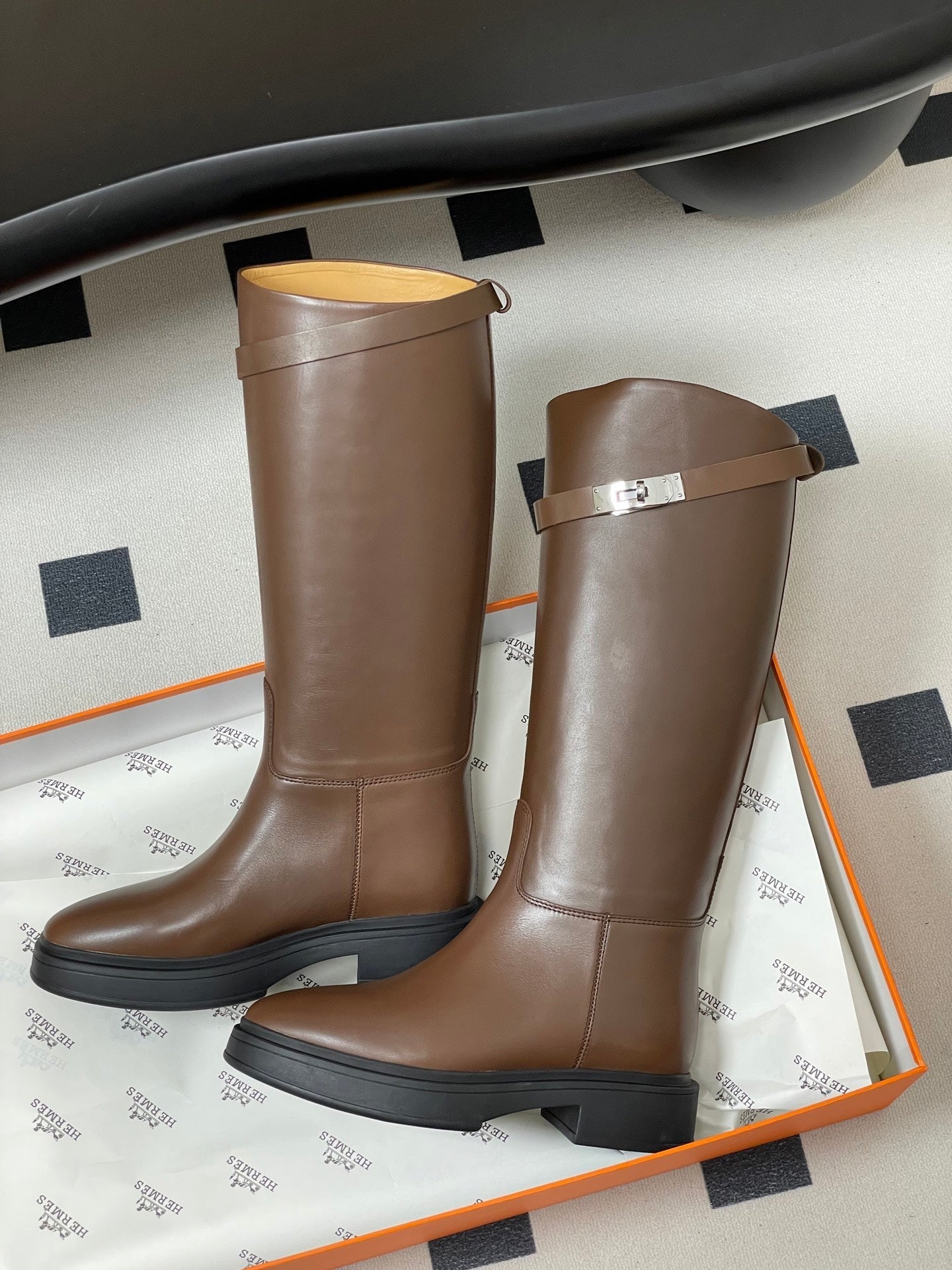HM Jumping Boots 30mm Caramel Brown Kelly Buckle Calfskin 423263