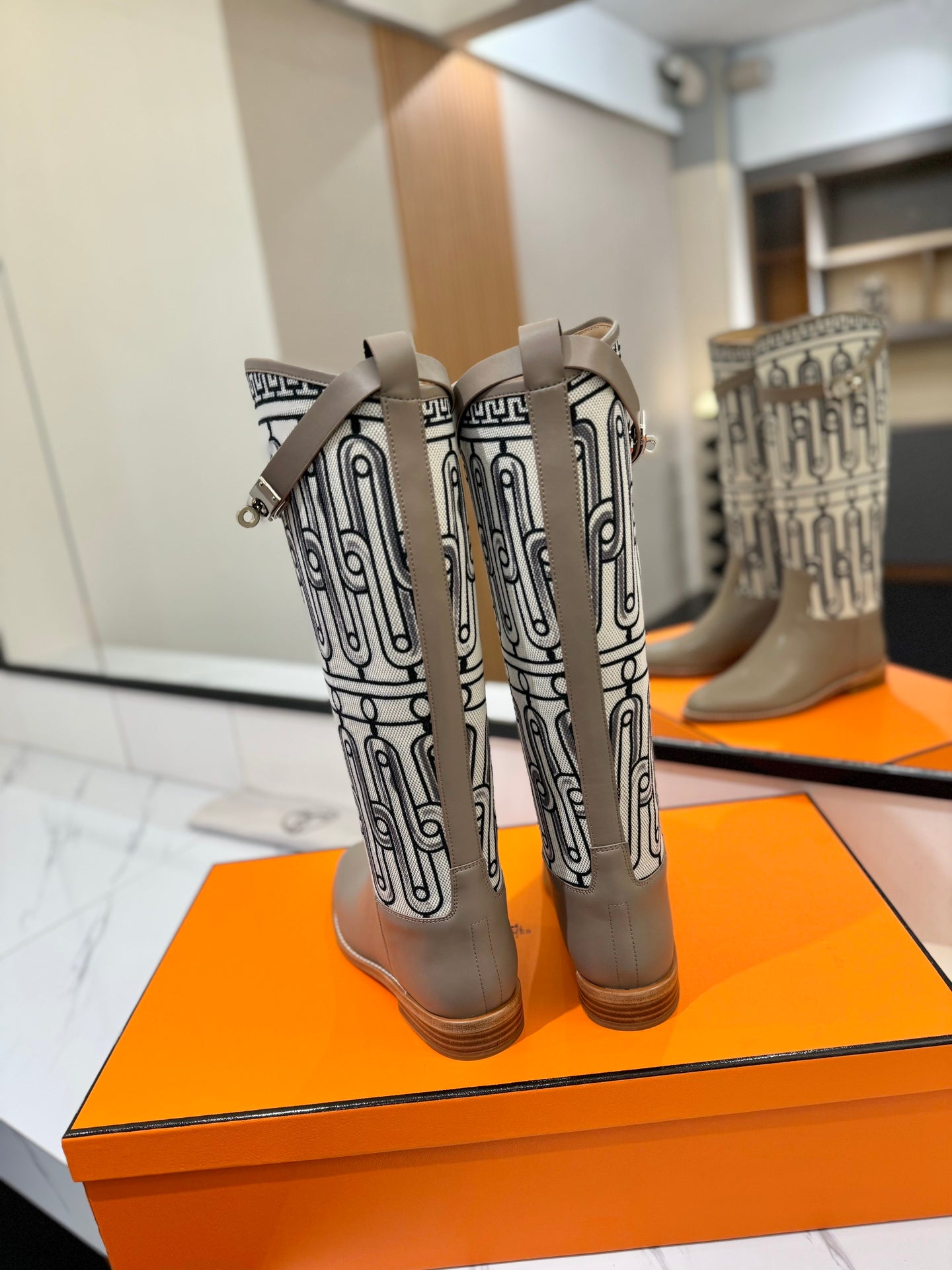 HM Jumping Boot 20MM Grey Beige Printed Pattern Cowhide 992360