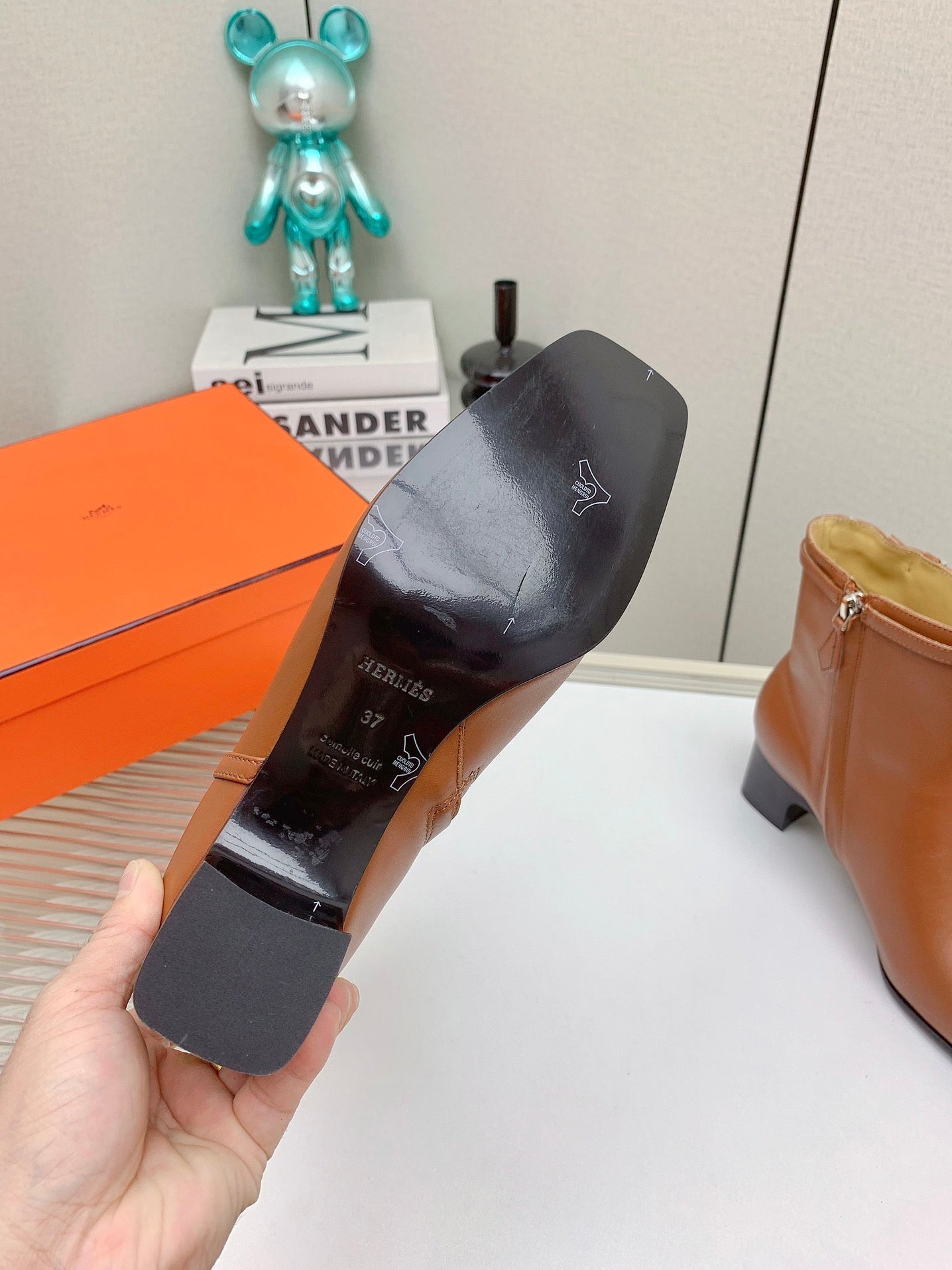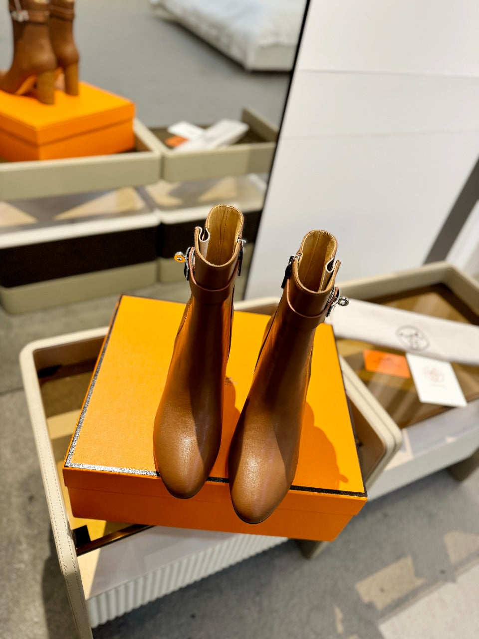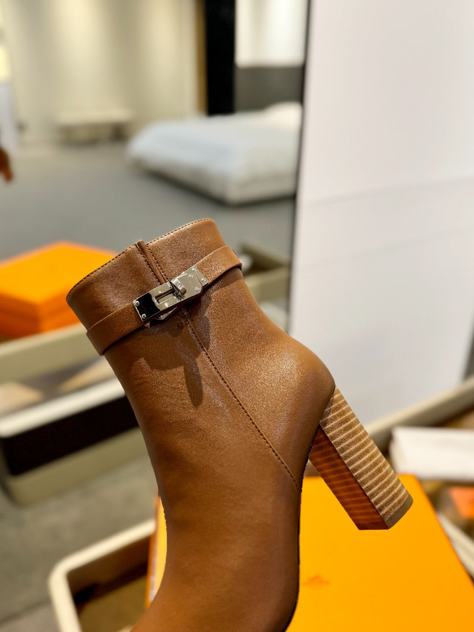 HM Jill Ankle Boot 65mm Brown Orange Calfskin 974682