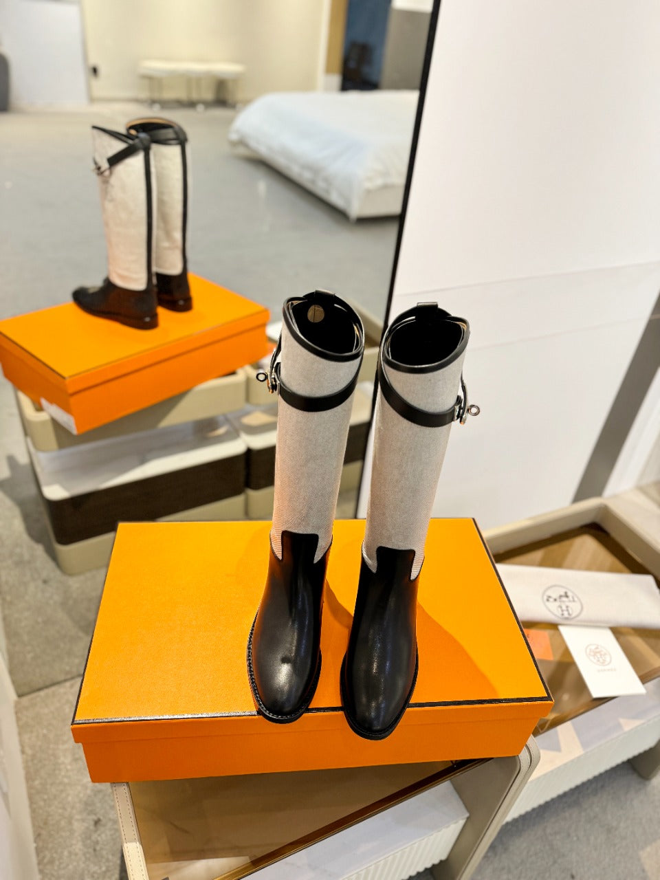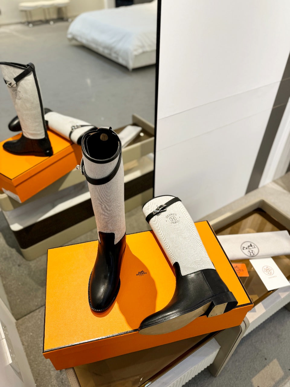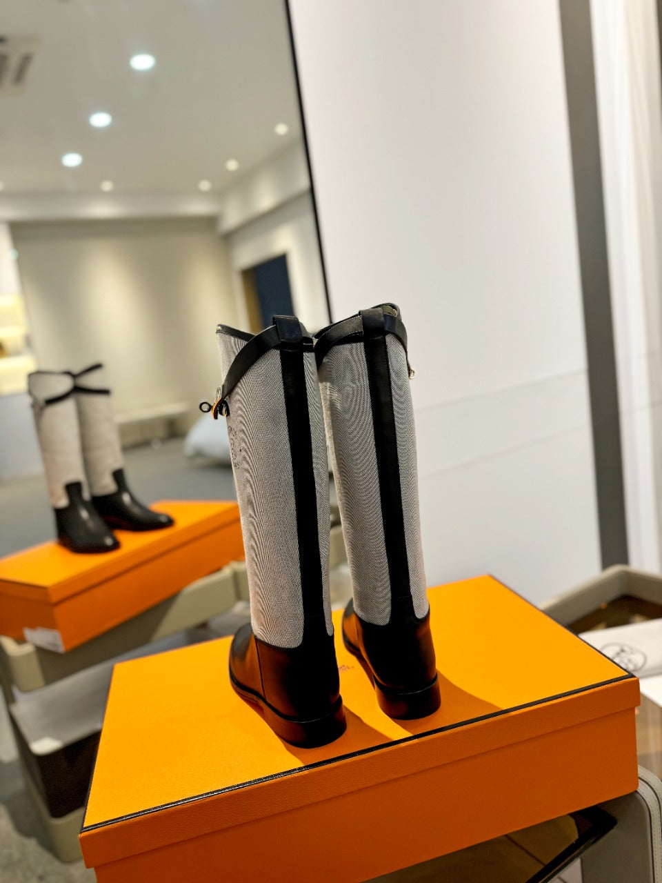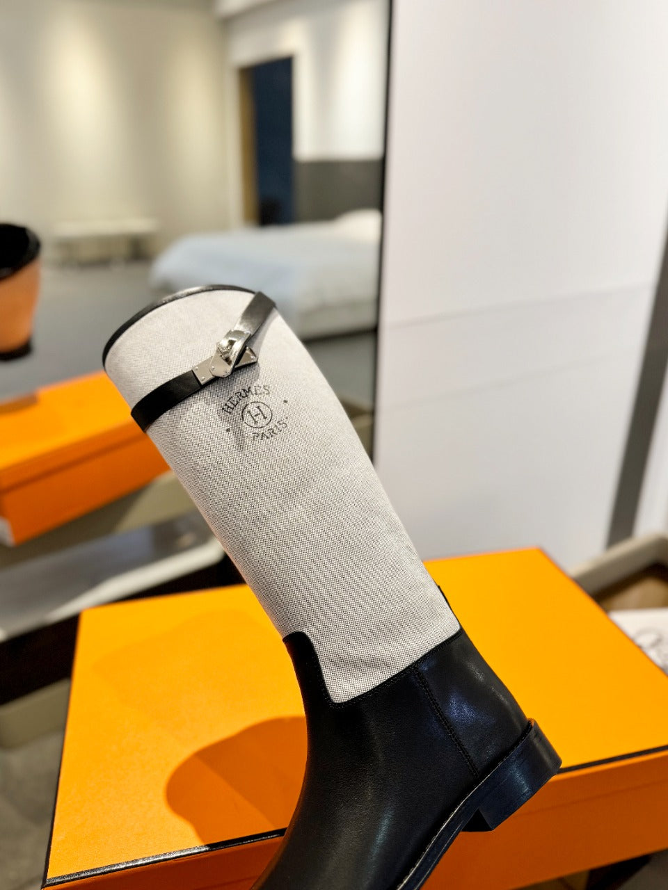 HM Jumping Boot In White Mix Black Calfskin And Burlap 973841