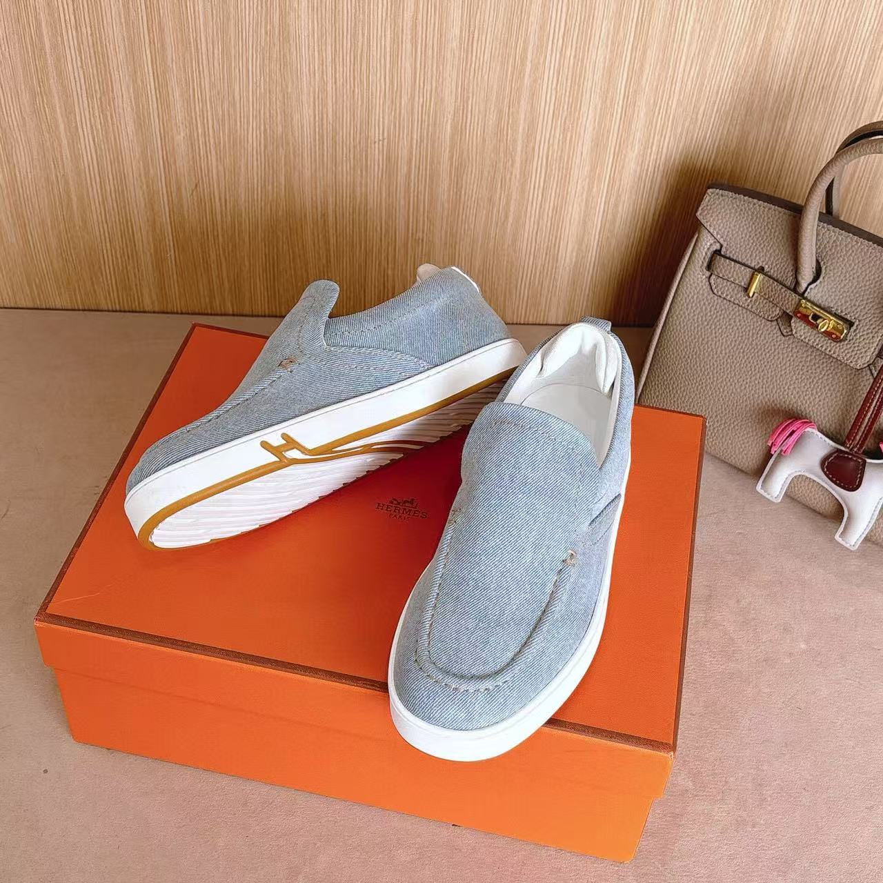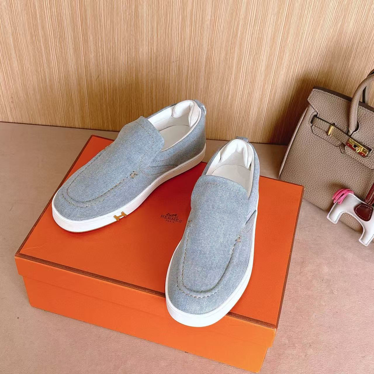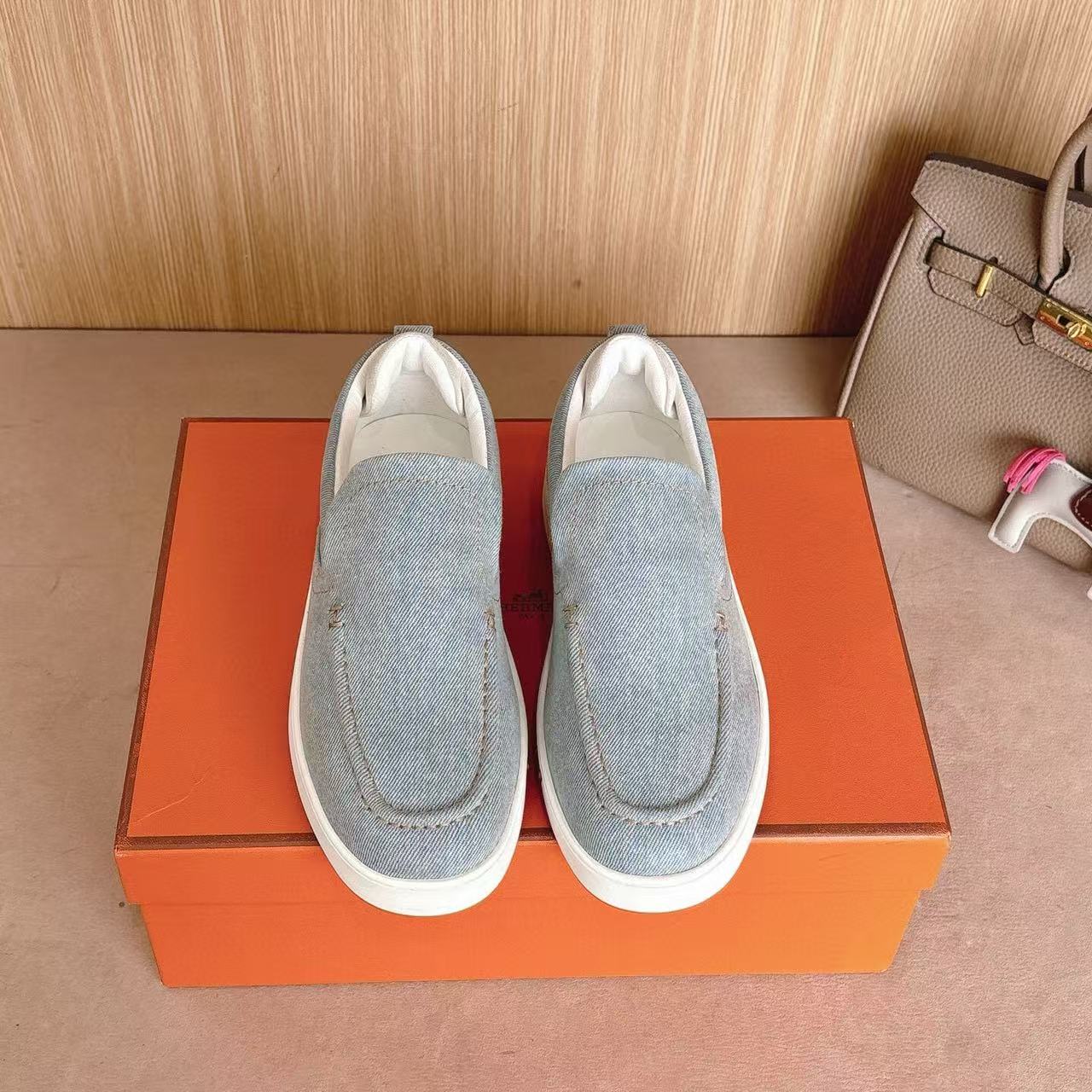 Hermes Loafer Blue White Denim leather