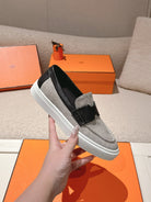HM 25ss Platform Loafers Gray Black Denim Cowhide 577165