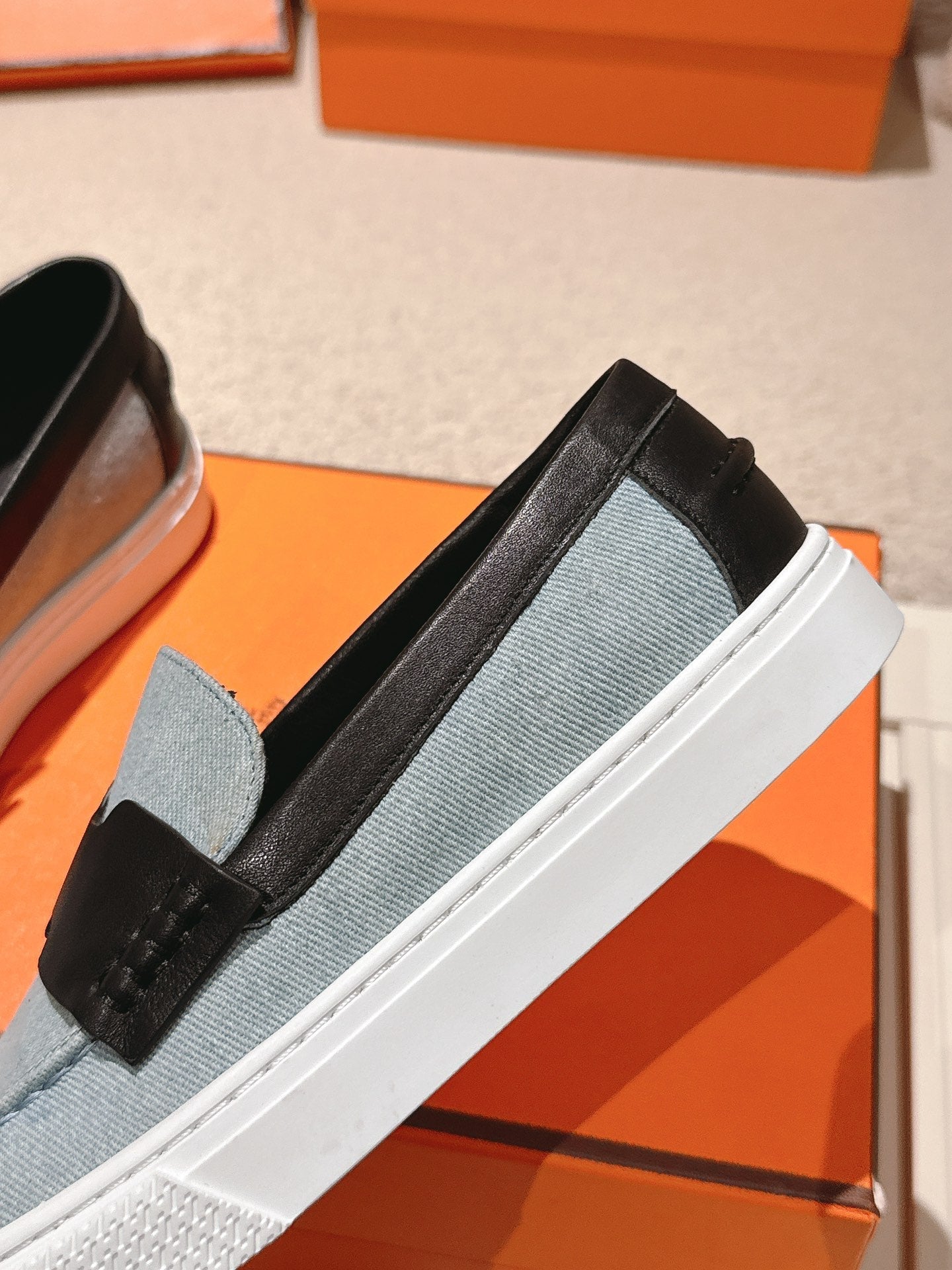 HM 25ss Platform Loafers Light Blue Black Denim Sheepskin 577168