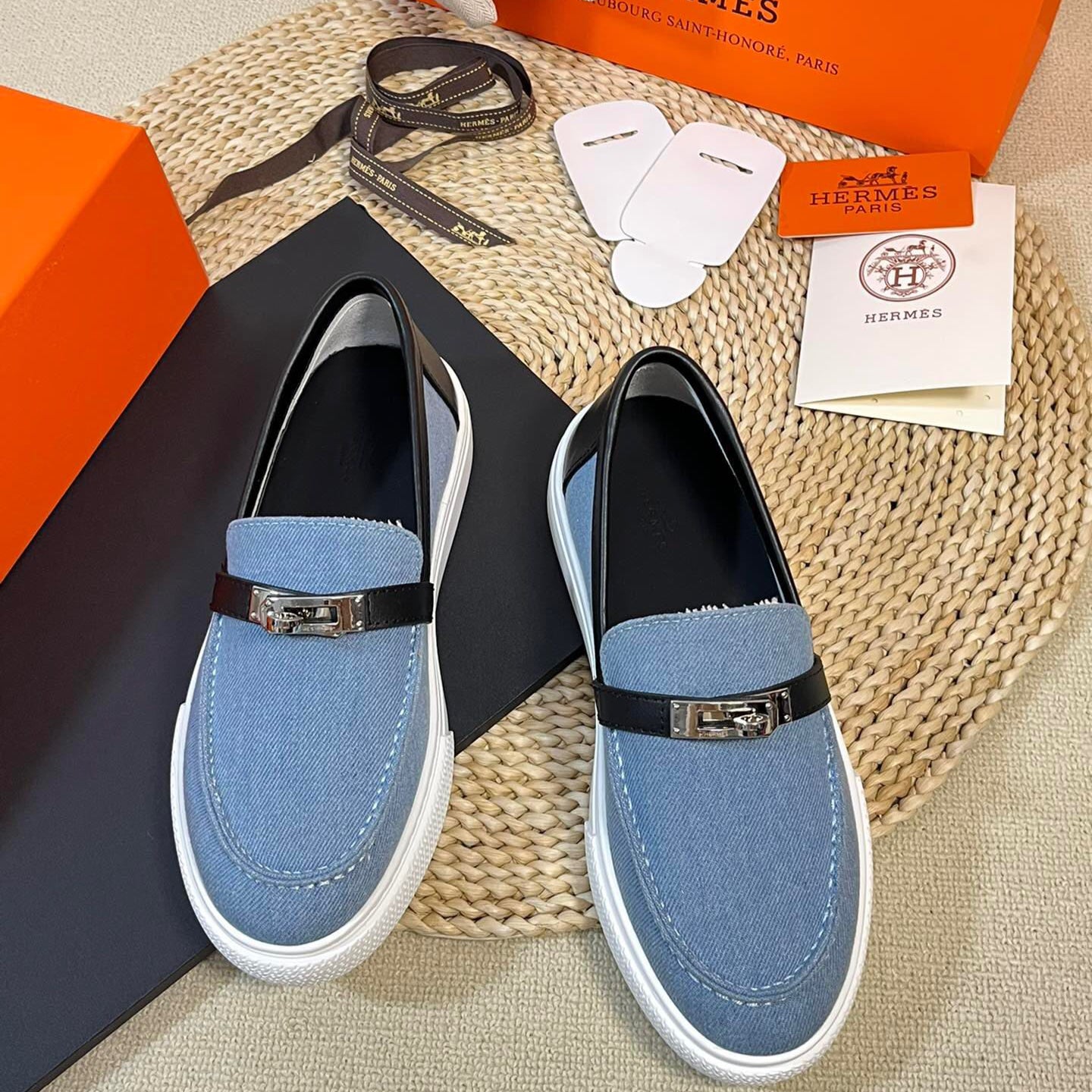 HM Denim Loafer Blue Black Cowhide Cloth 317049