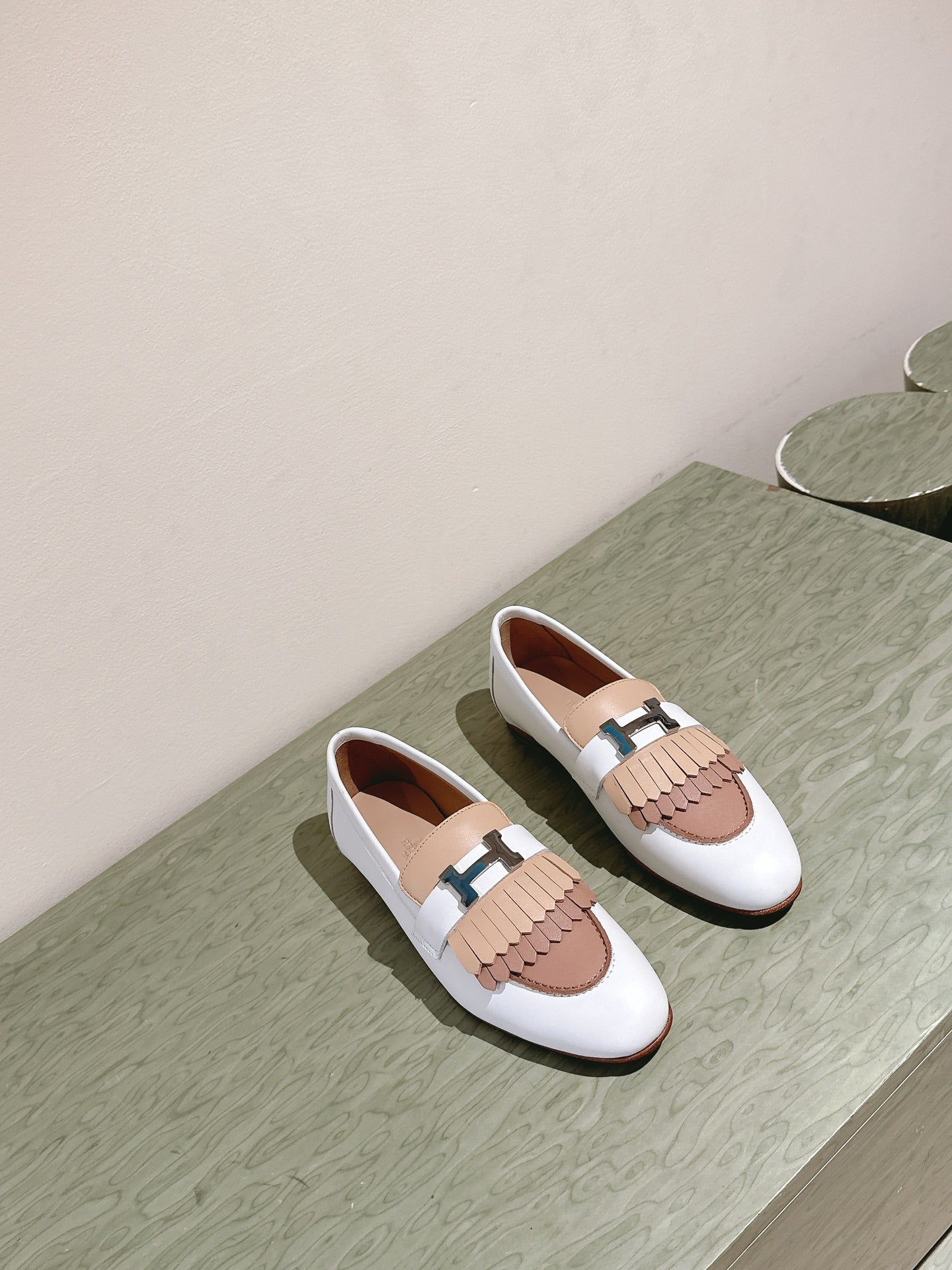 HM Mocassins Royal Loafers White Beige Sheepskin 445010