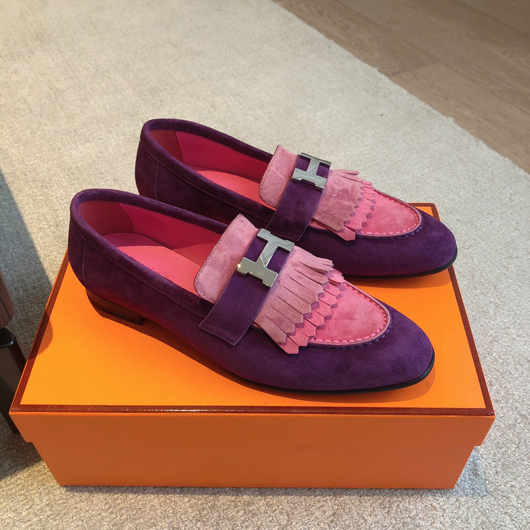 Royal Loafer Purple Mix Pink Suede Calfskin With Fringe Detail And Silver Signature Buckle 509437