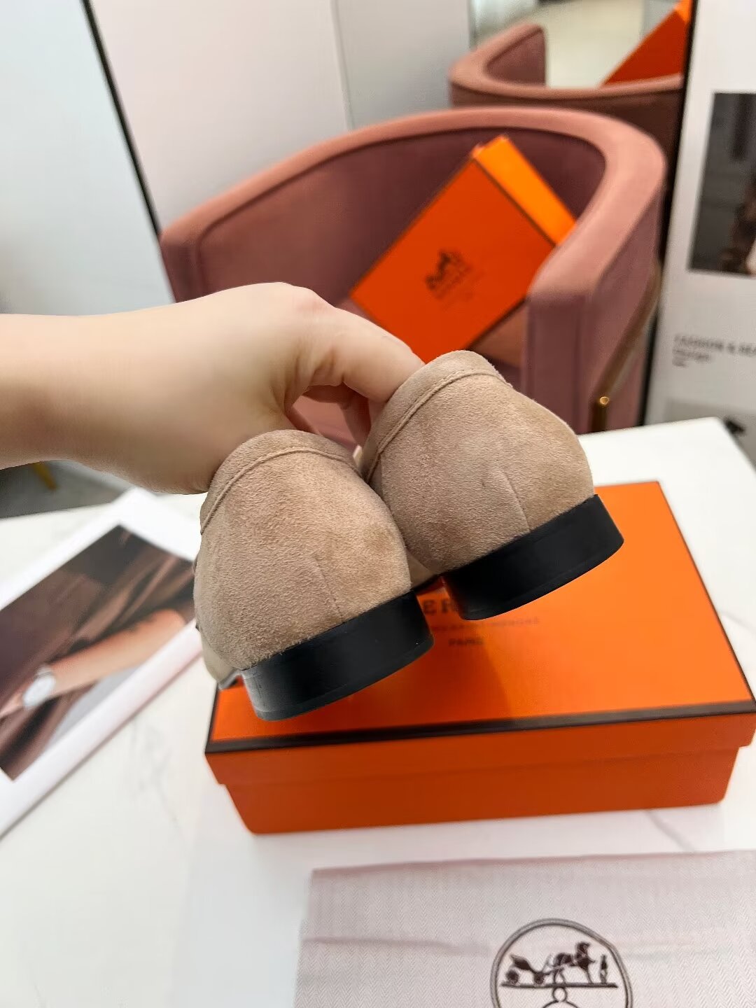 Paris Loafer Light Brown Suede Calfskin With Pink Gold Signature Buckle 509373