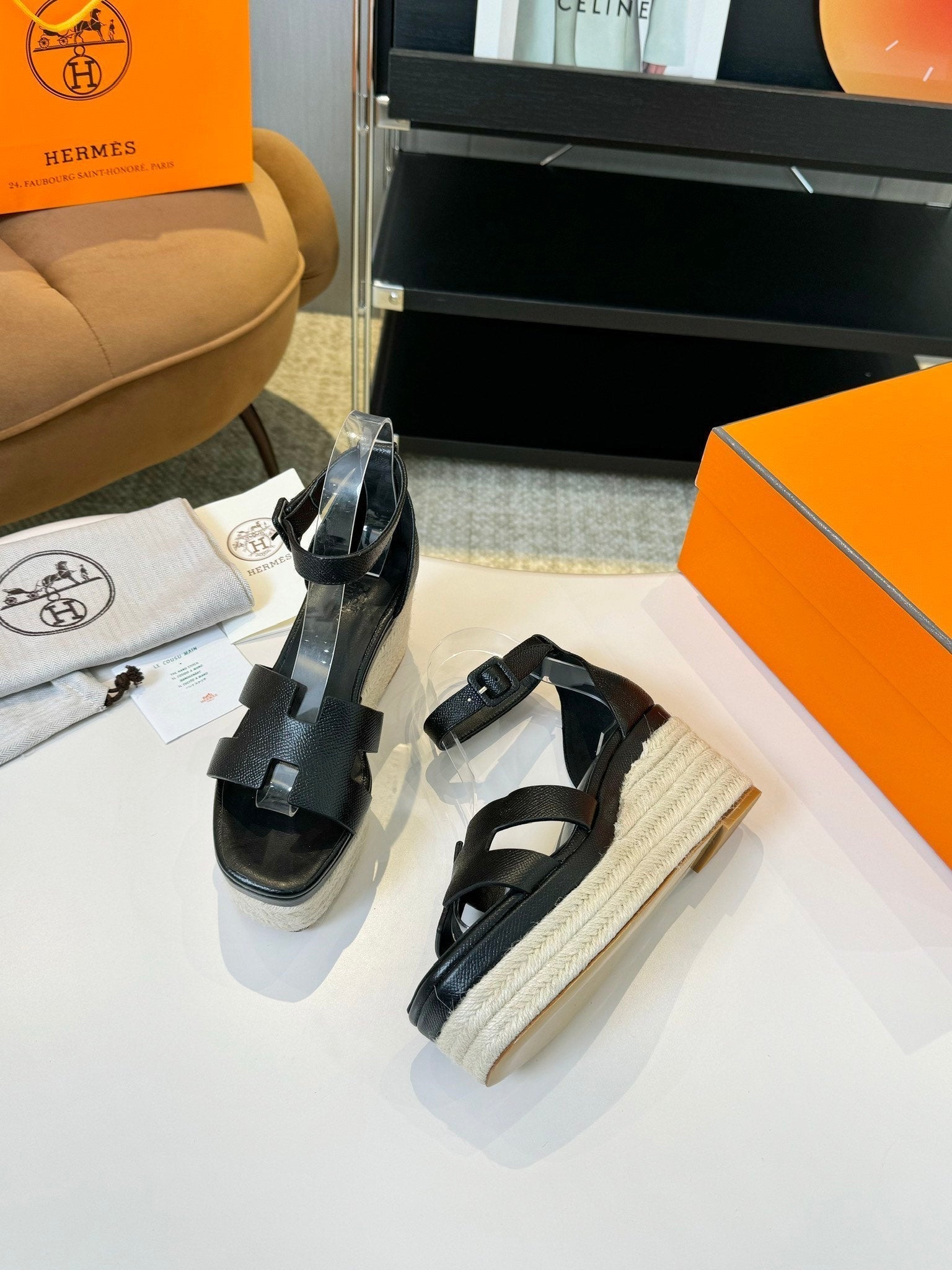 Elda espadrille 80 Black Epsom Calfskin
