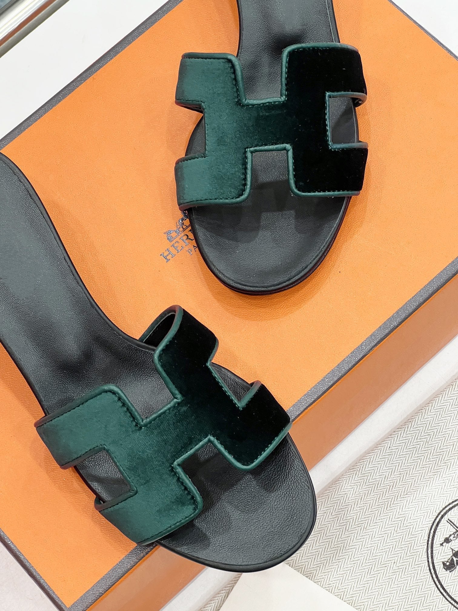 • Material: Sandal in velvet with iconic "H" cut-out.