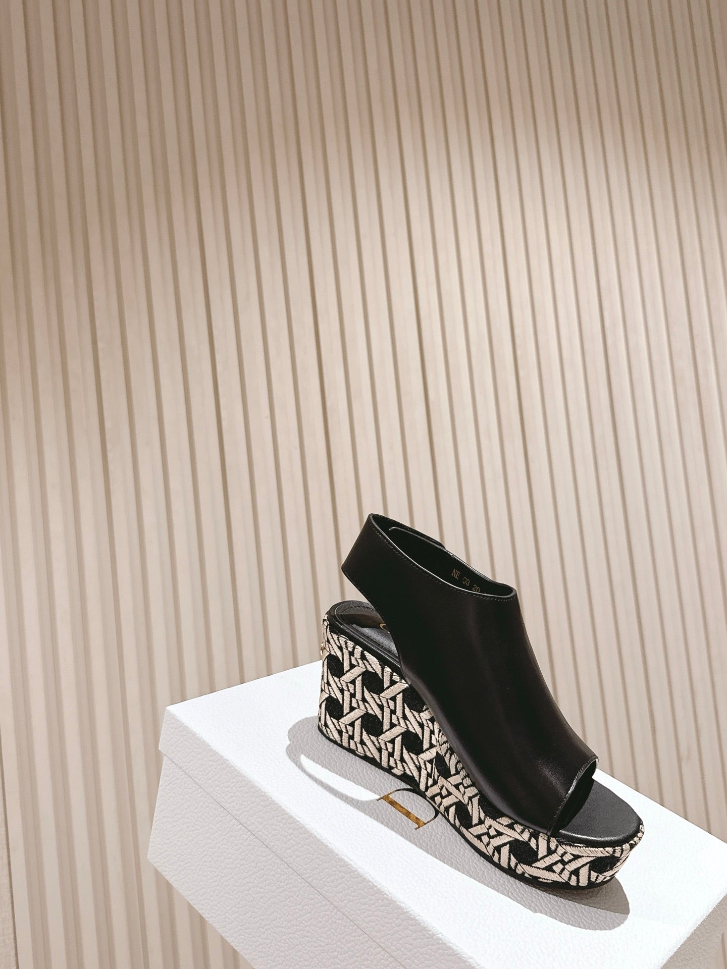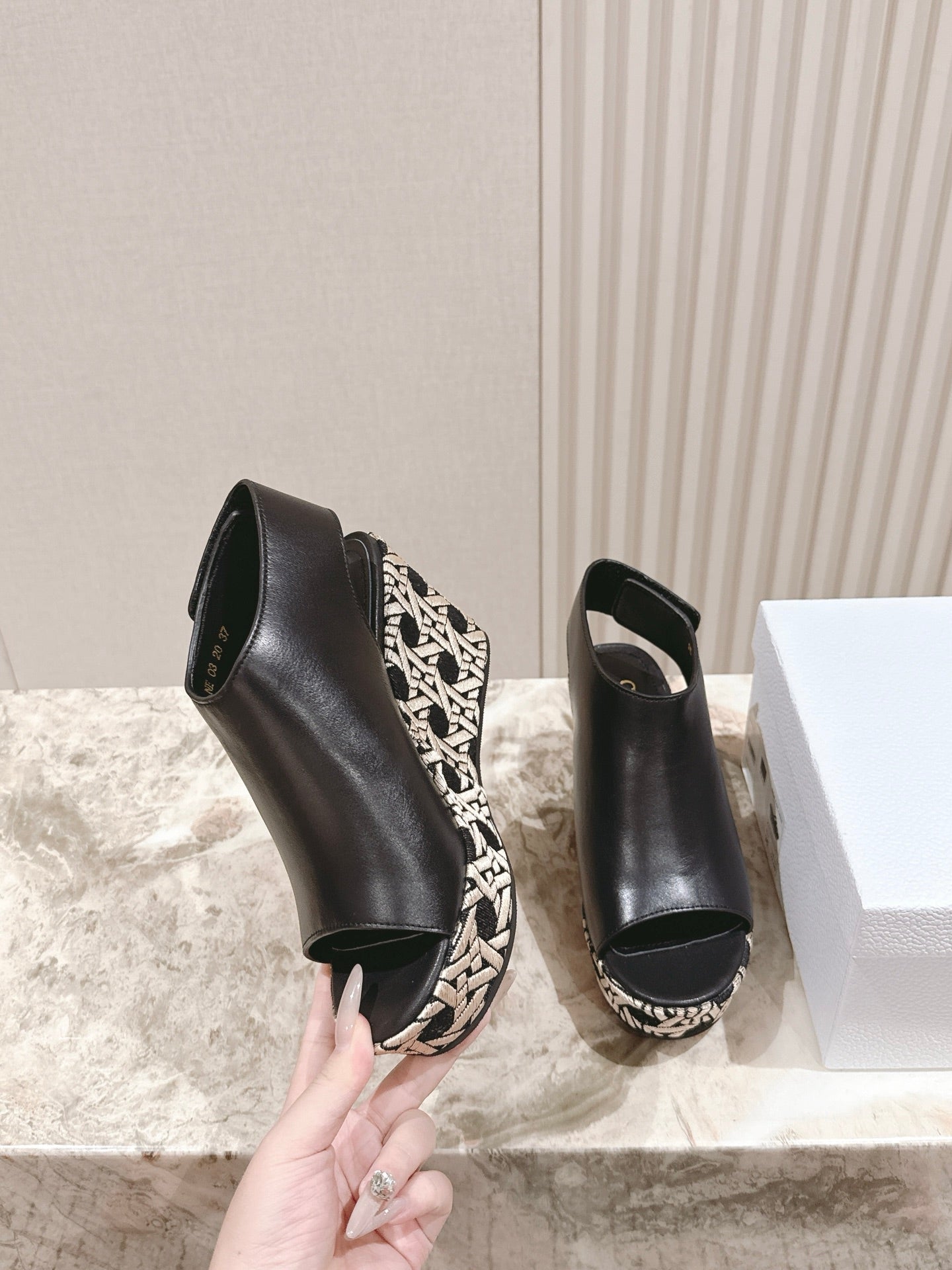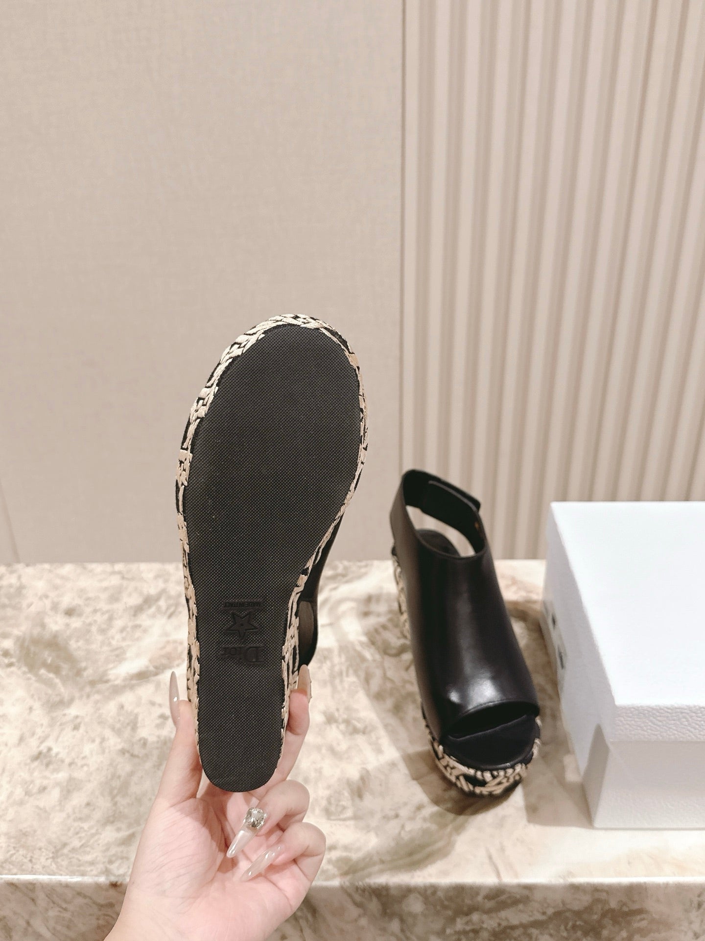 CD Attitude Wedge Sandal 85mm Black Calfskin 483087