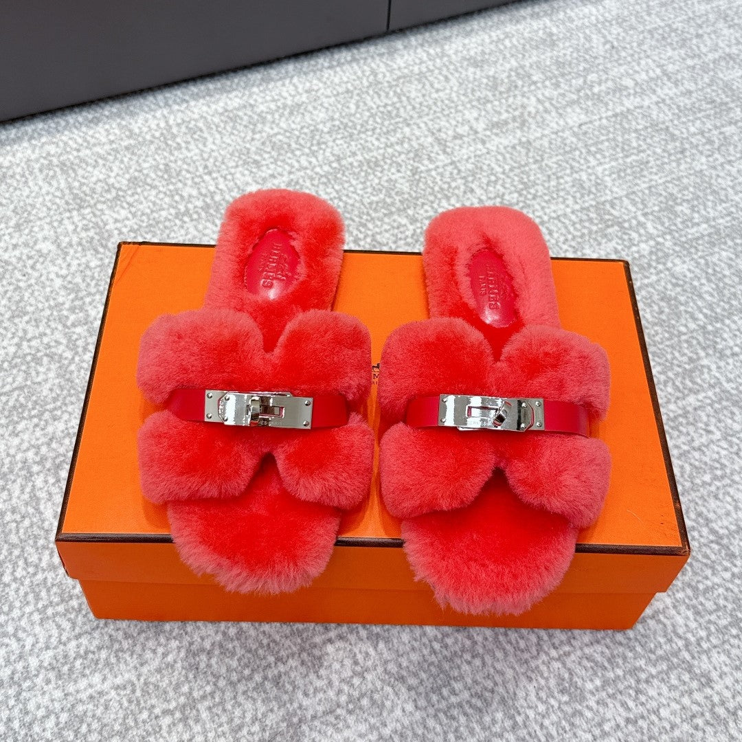 HM 25s H Shaped Slipper with Buckle Red Shearling 462198