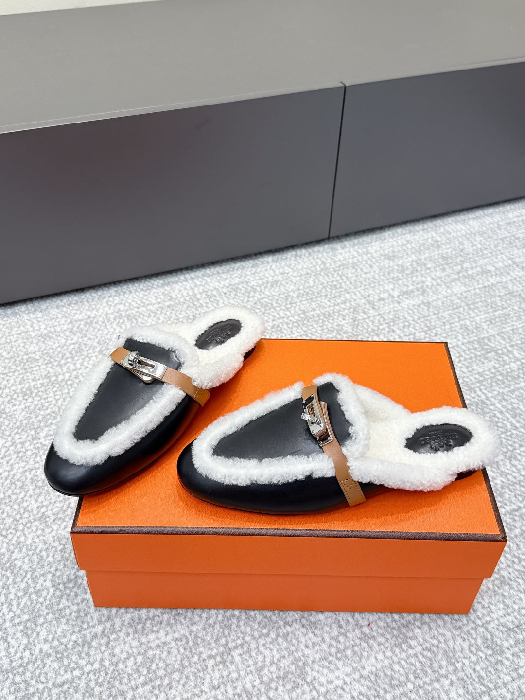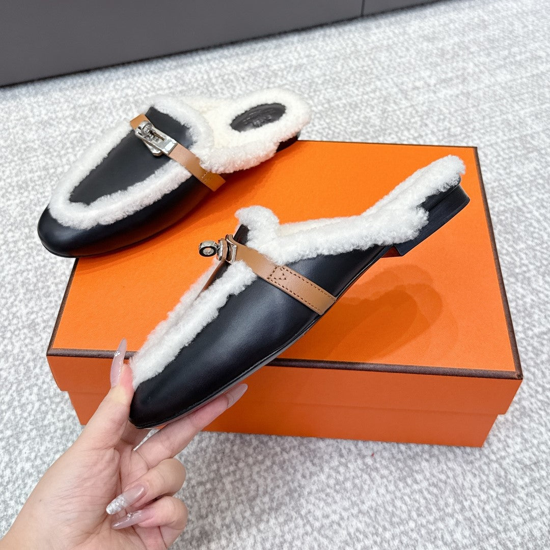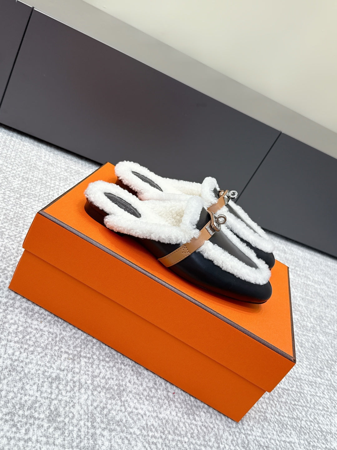 HM 25ss Oz Mule Black Goatskin And Shearling 461941