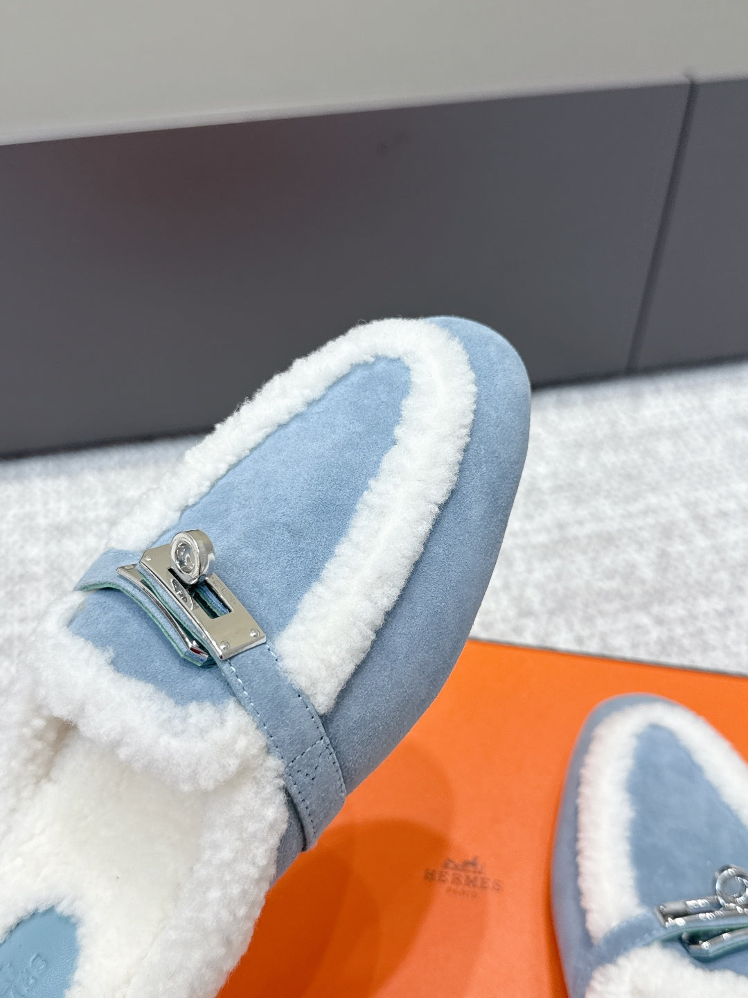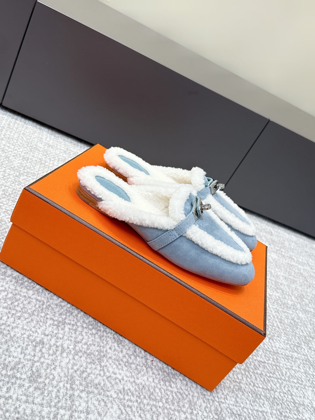 HM 25ss Oz Mule Blue Suede And Shearling 461939