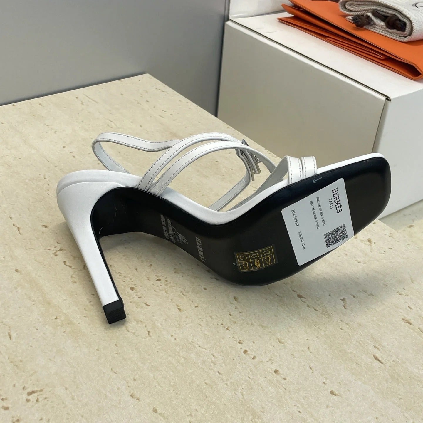 HM 26ss Kelly Sliver Buckle Sandals 95 White Calfskin 607169