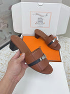 HM 26ss Oasis Sandals 50 Brown Black Sheepskin Sliver Buckle 625173