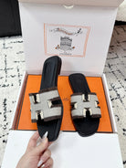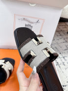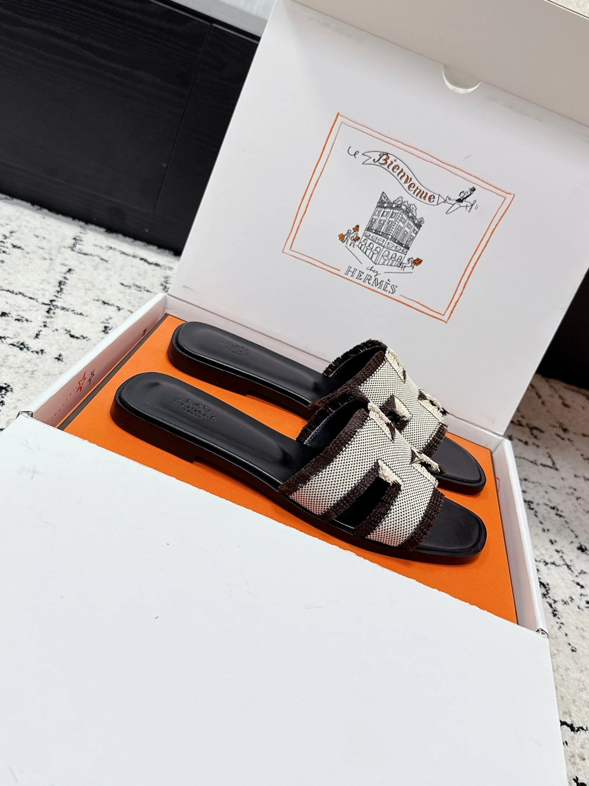 HM 26ss Oran Sandals Black White Brown Canvas Cowhide 617214
