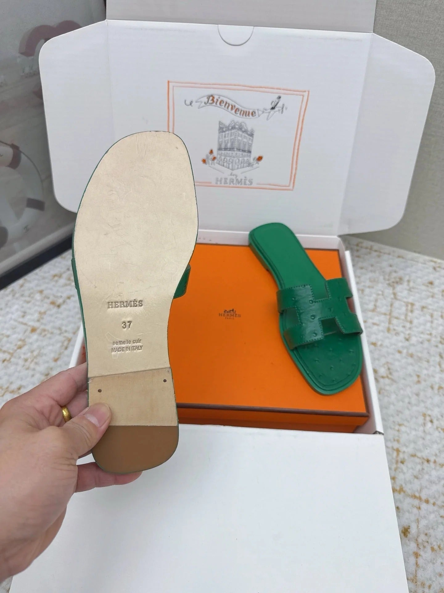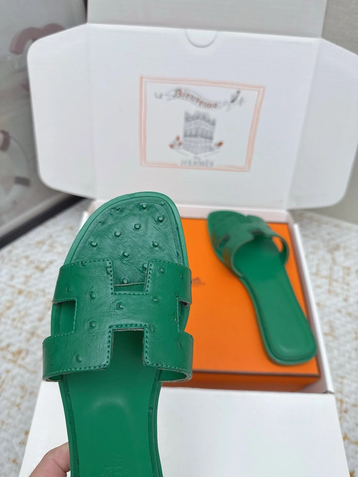 HM 26ss Oran Sandals Green Ostrich Leather 625102