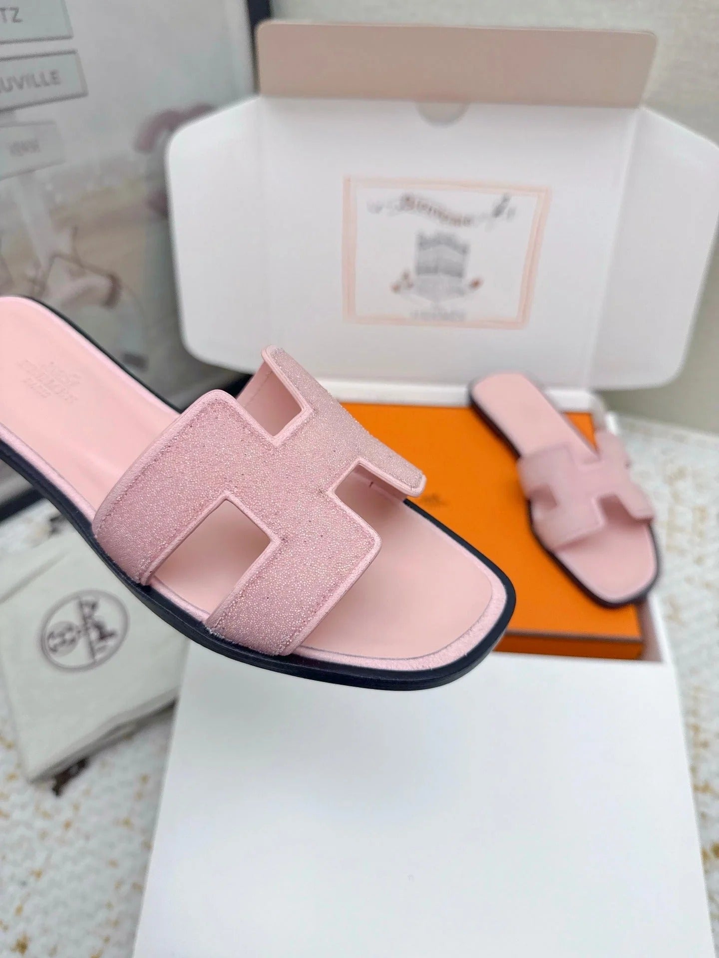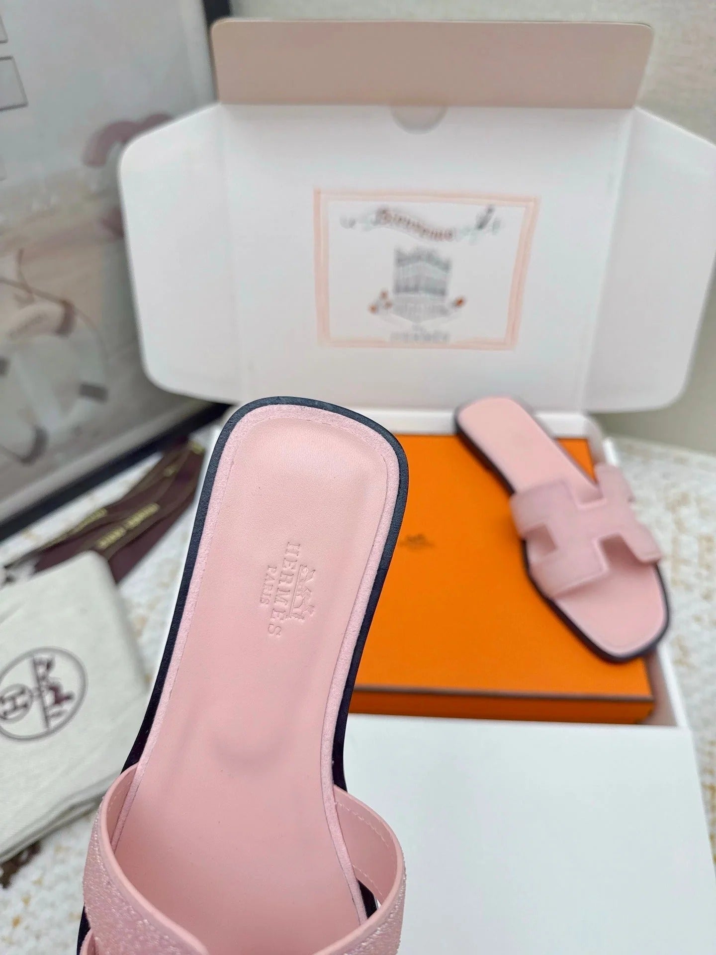 HM 26ss Oran Sandals Light Pink Rhinestone Cowhide 625265