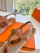 HM 26ss Pig-Nose Flat Sandals Brown Beige Mesh Sheepskin 603925