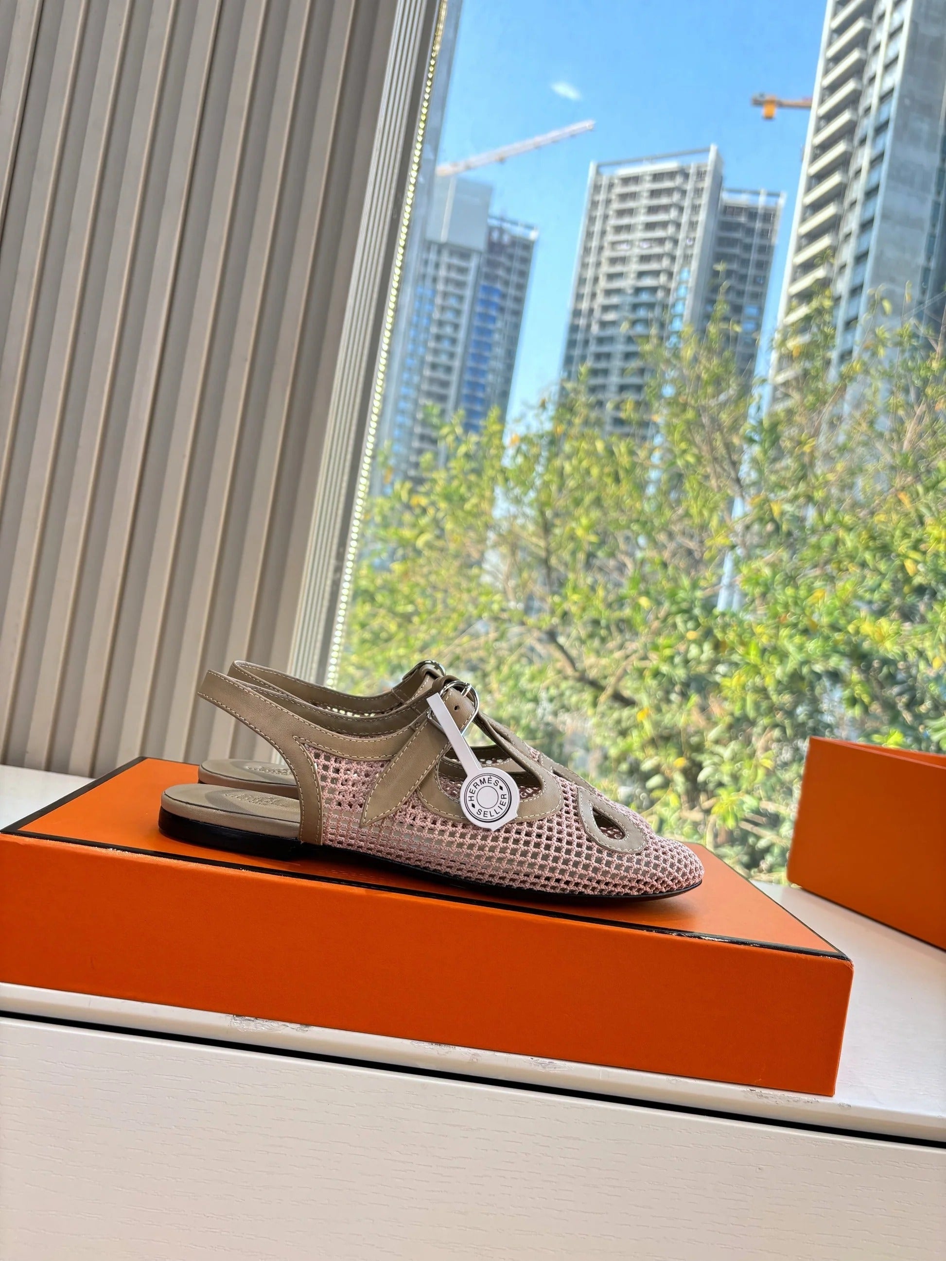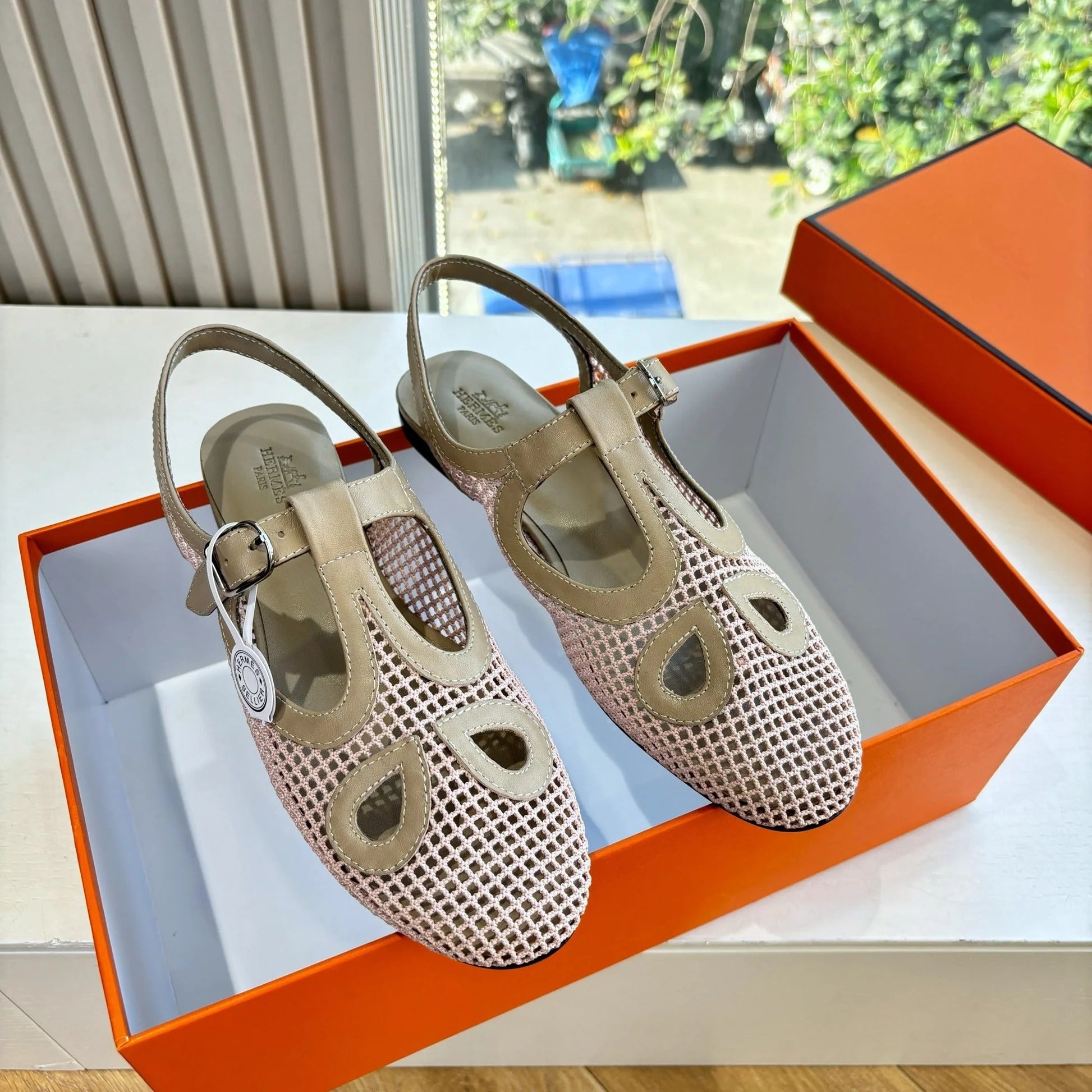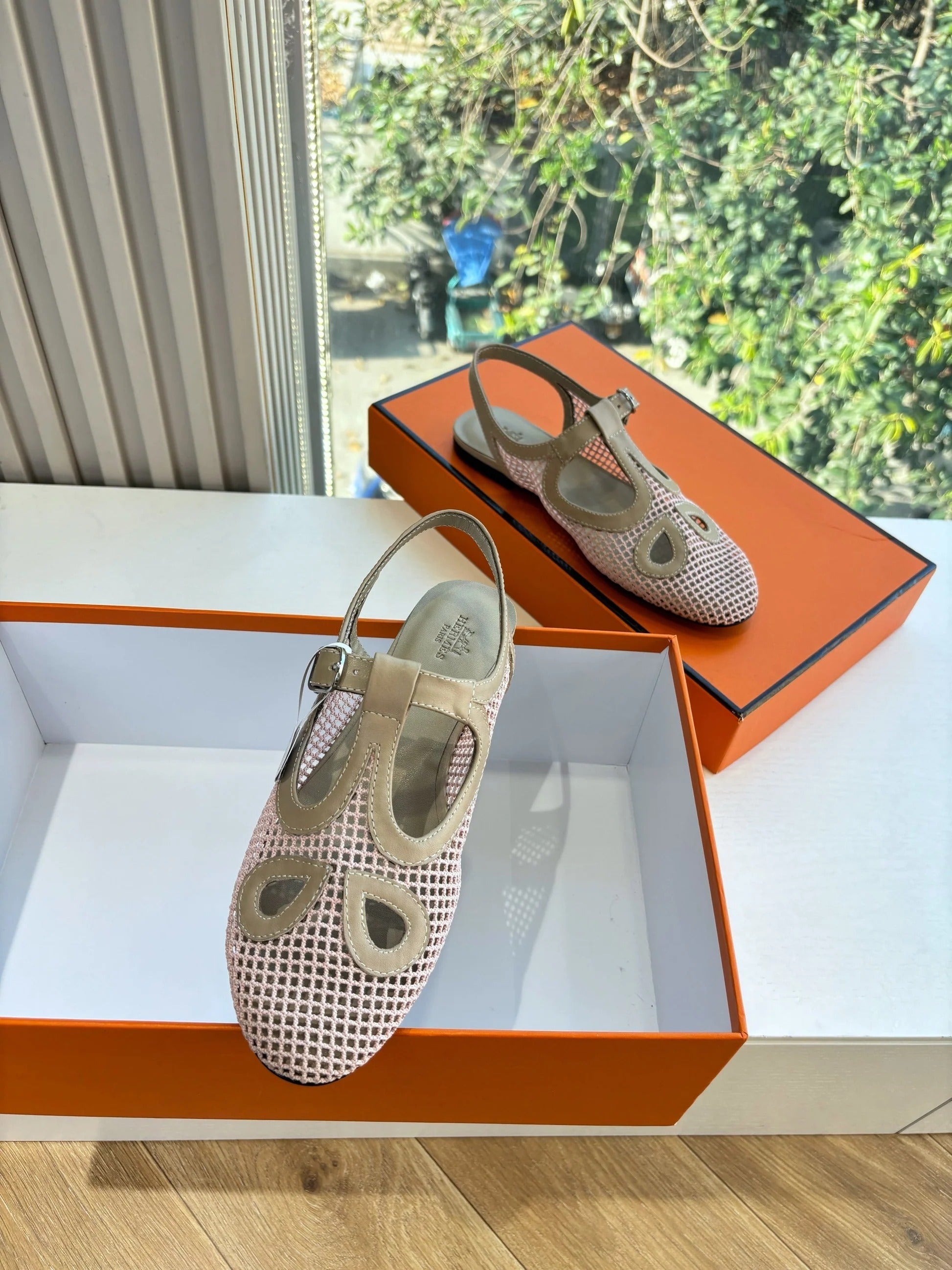HM 26ss Pig-Nose Flat Sandals Ivory Nude Mesh Sheepskin 603924