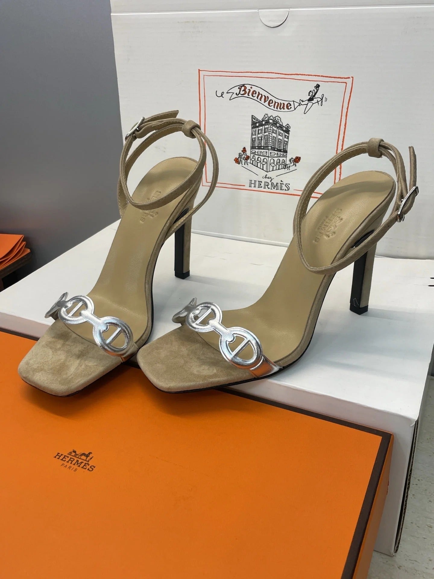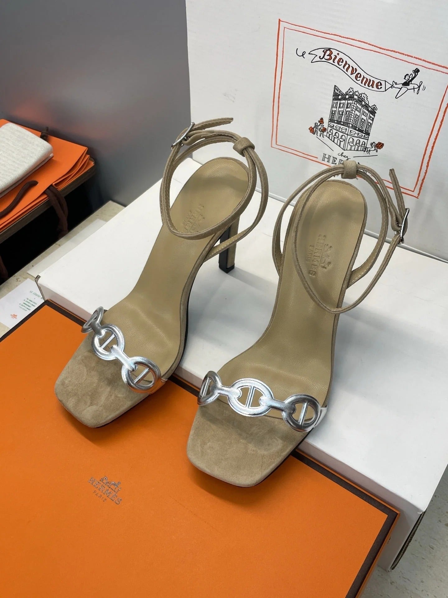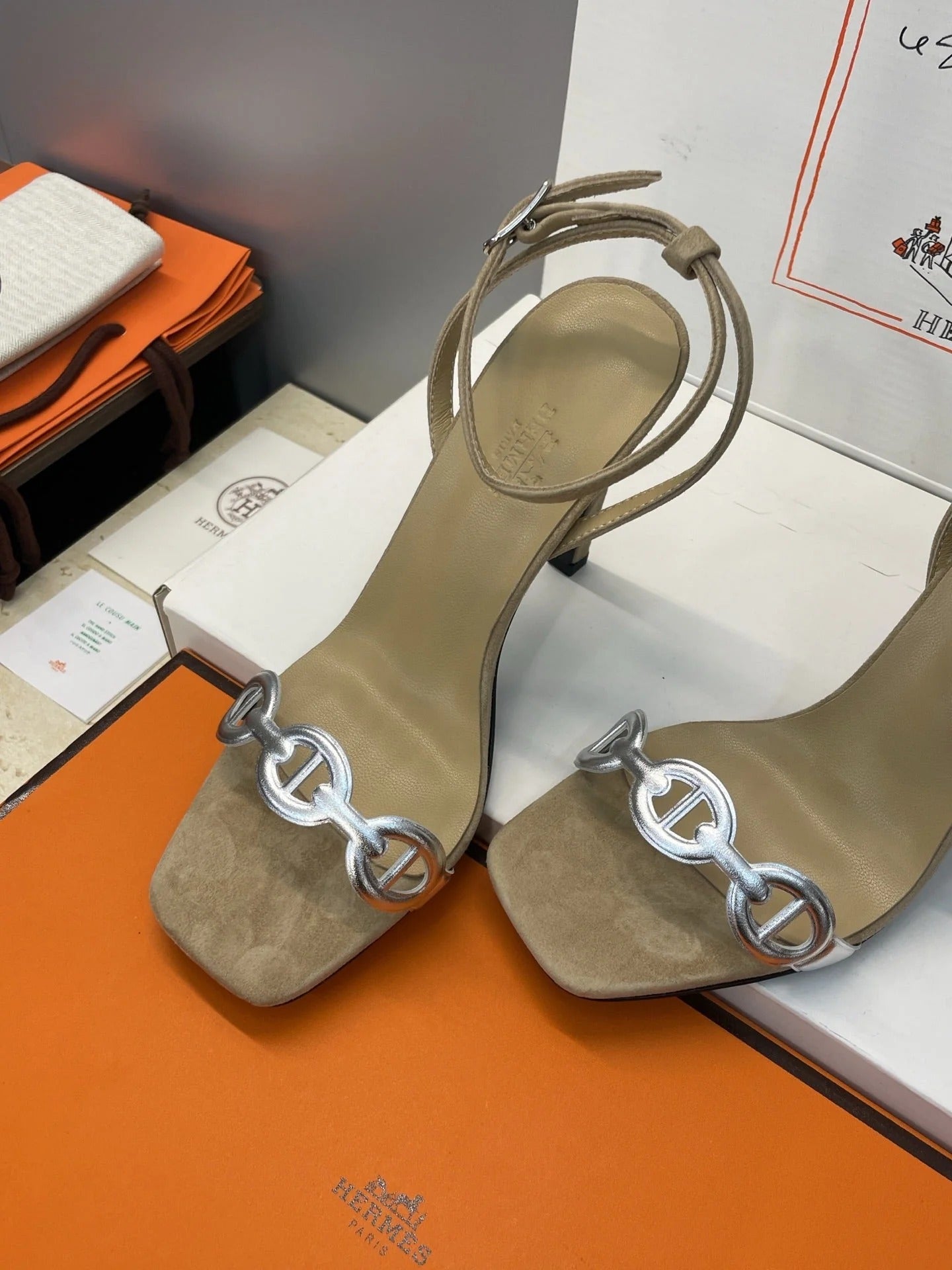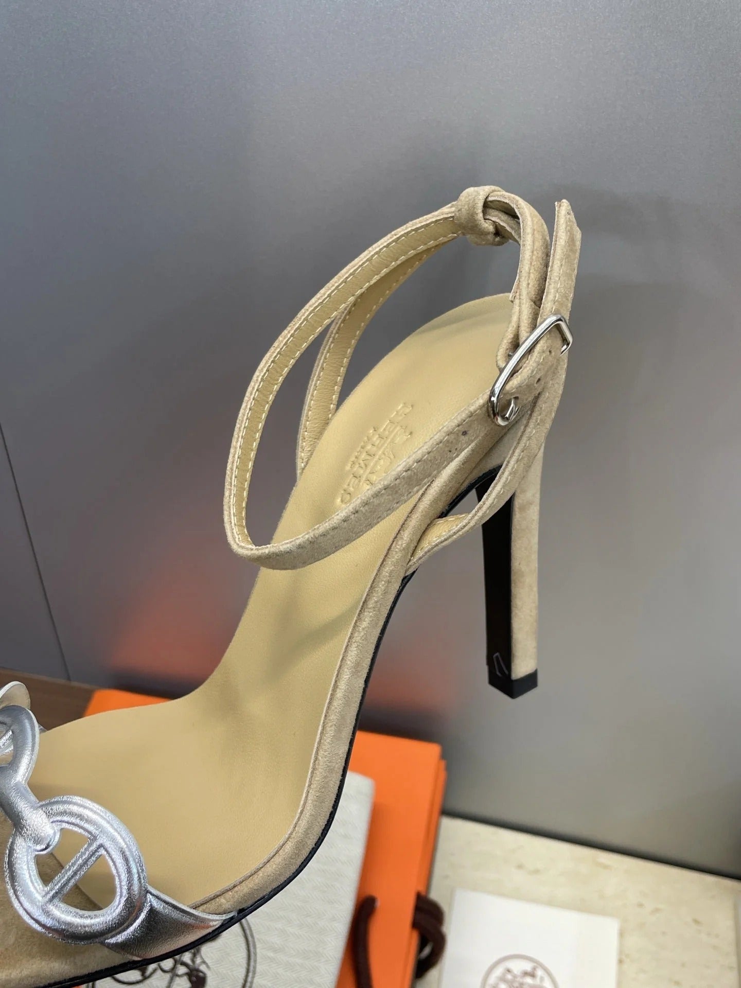 HM 26ss Pig-Nose Sandals 105 Beige Suede Leather 607081