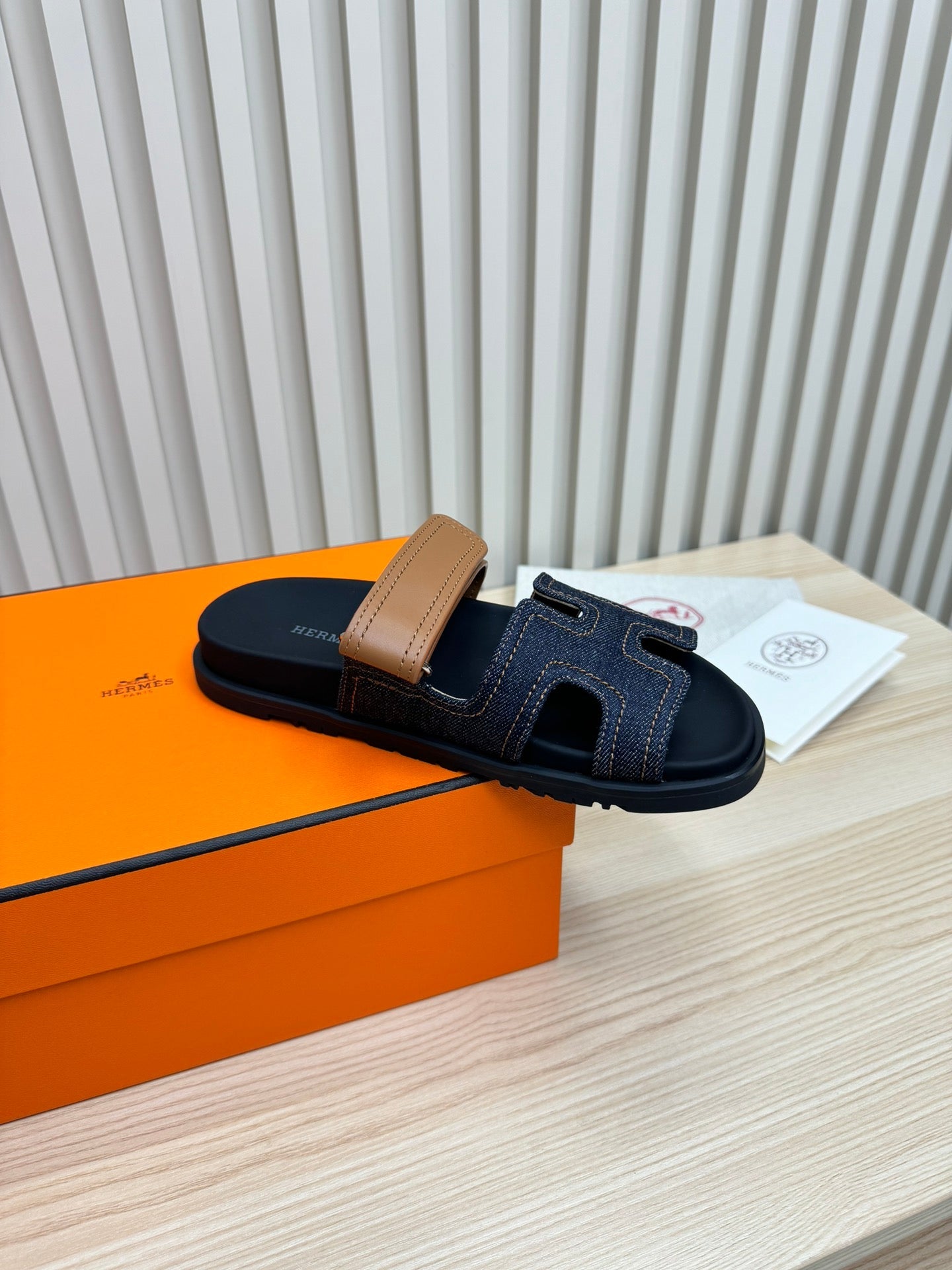 HM Chypre Sandal Hemming Brown Black Cowhide Denim 618587