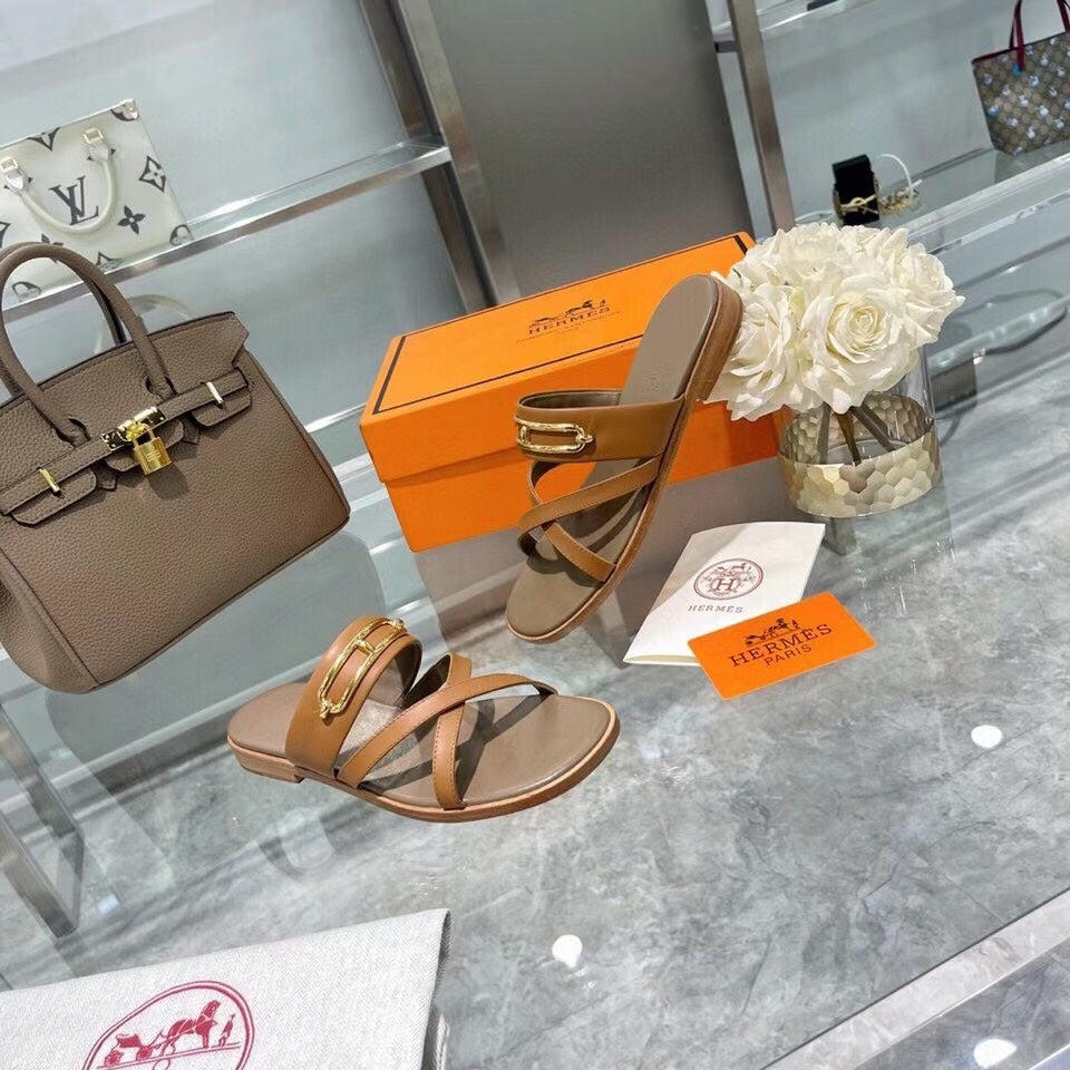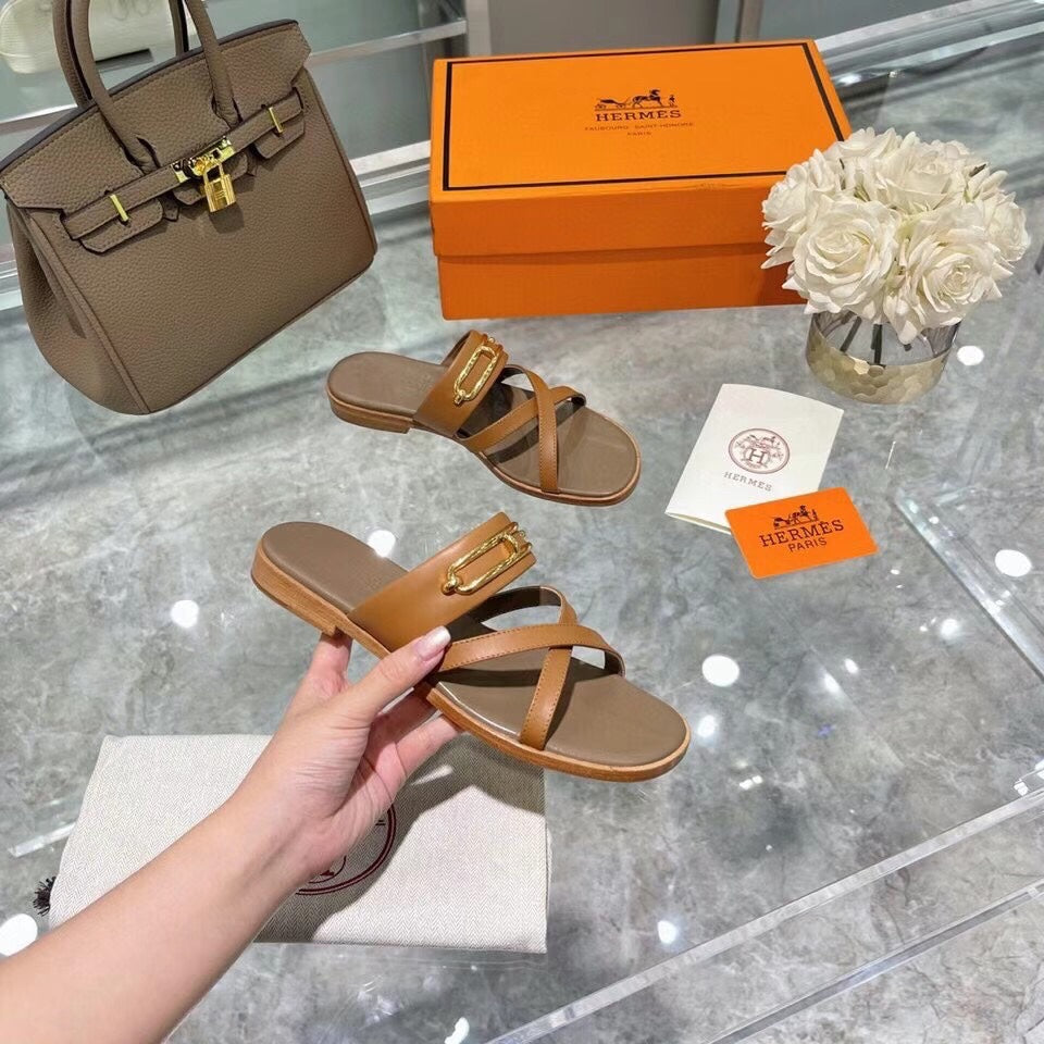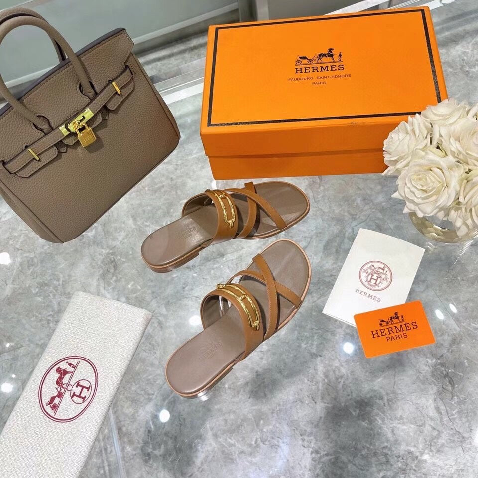 HM Claire Slippers Brown Cowhide 546092