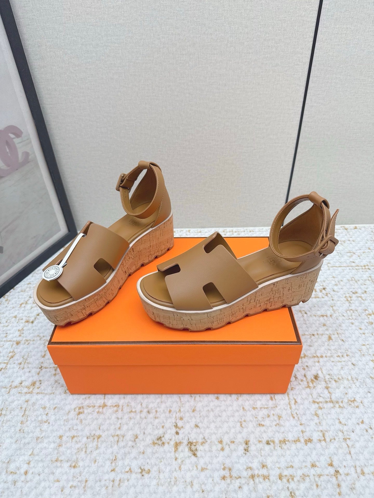 HM Luce 30 Sandal 65mm Brown Cowhide Cork 477969