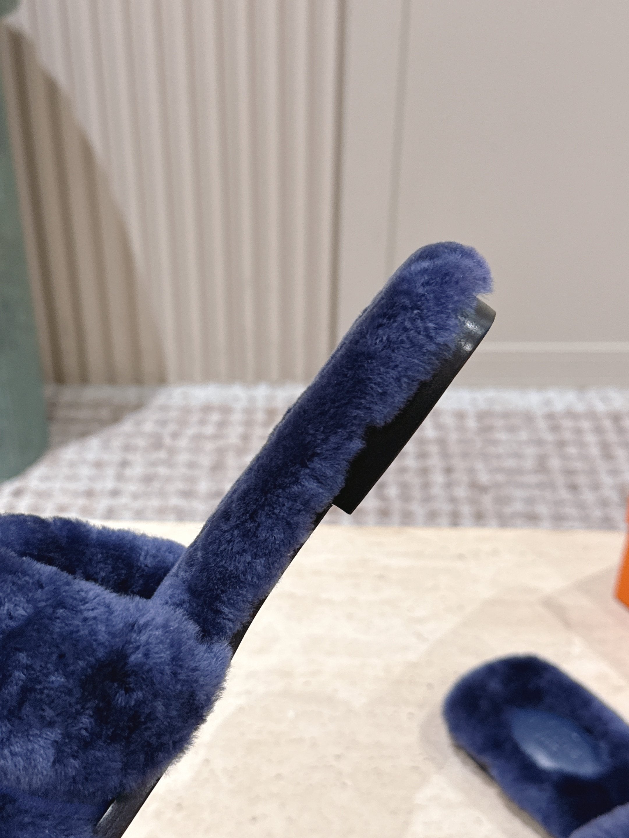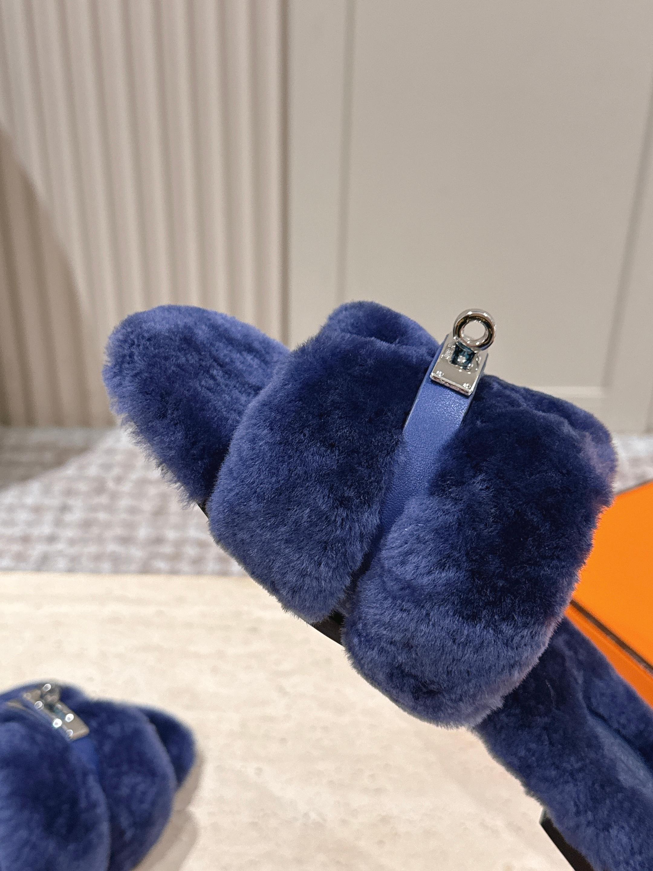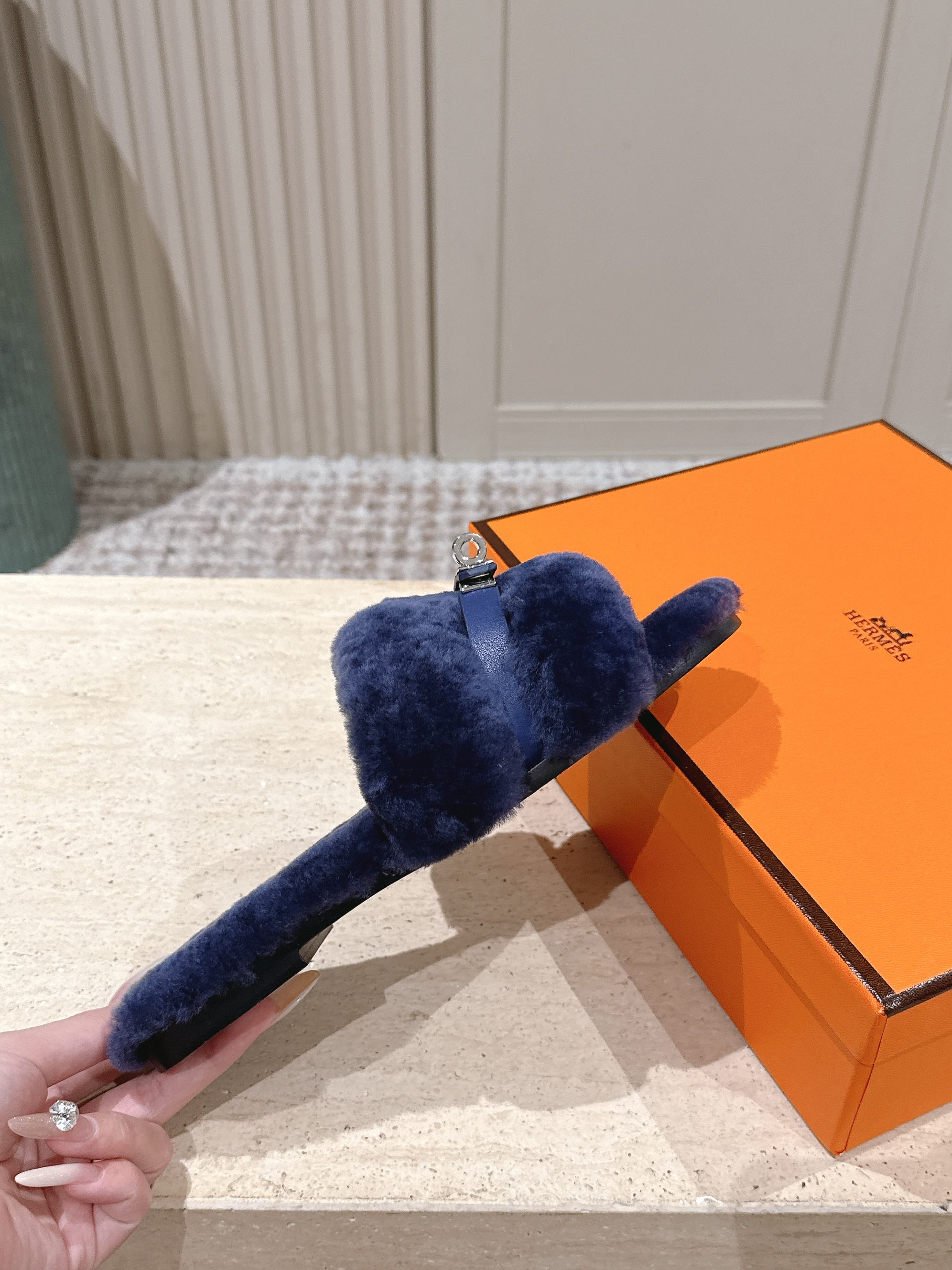 HM Oran Slippers Sliver Buckle Dark Blue Wool 583750