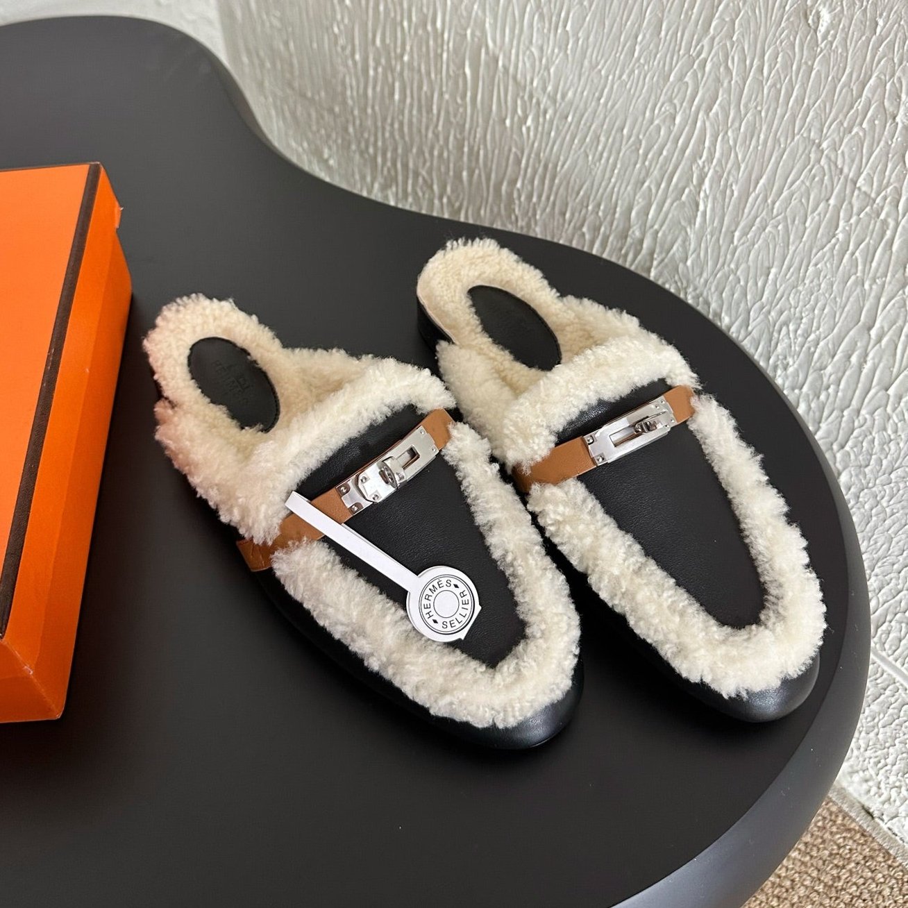 HM Oz Mule Black Mix White Lambskin Lined With Wool Fleece 961093