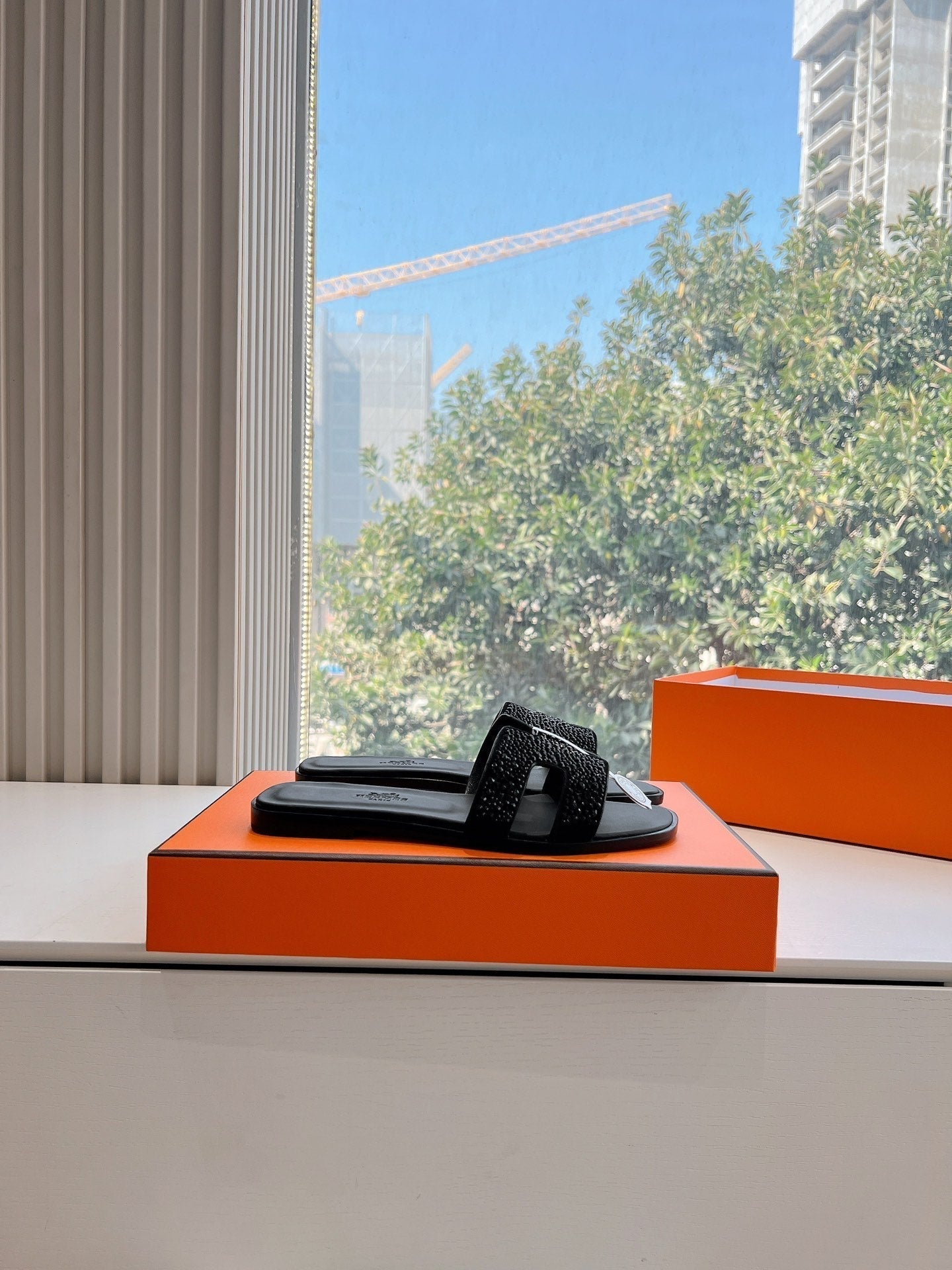 OASIS SLIDE IN BLACK CALFSKIN WITH CRYSTALS