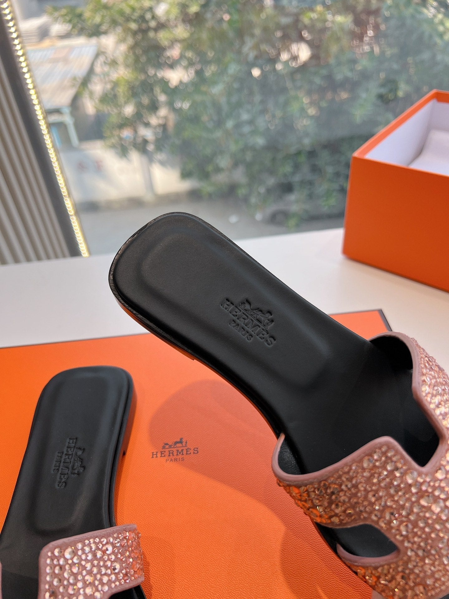 OASIS SLIDE IN PENNY BROWN CALFSKIN WITH CRYSTALS
