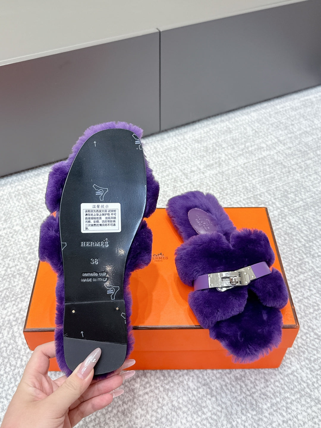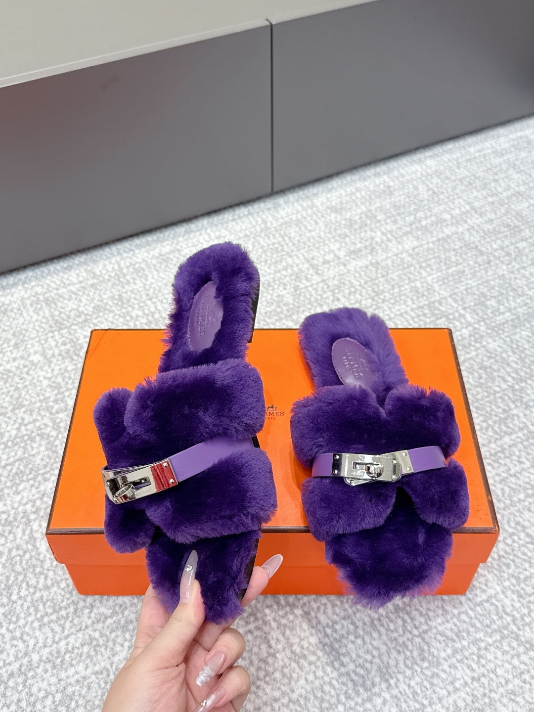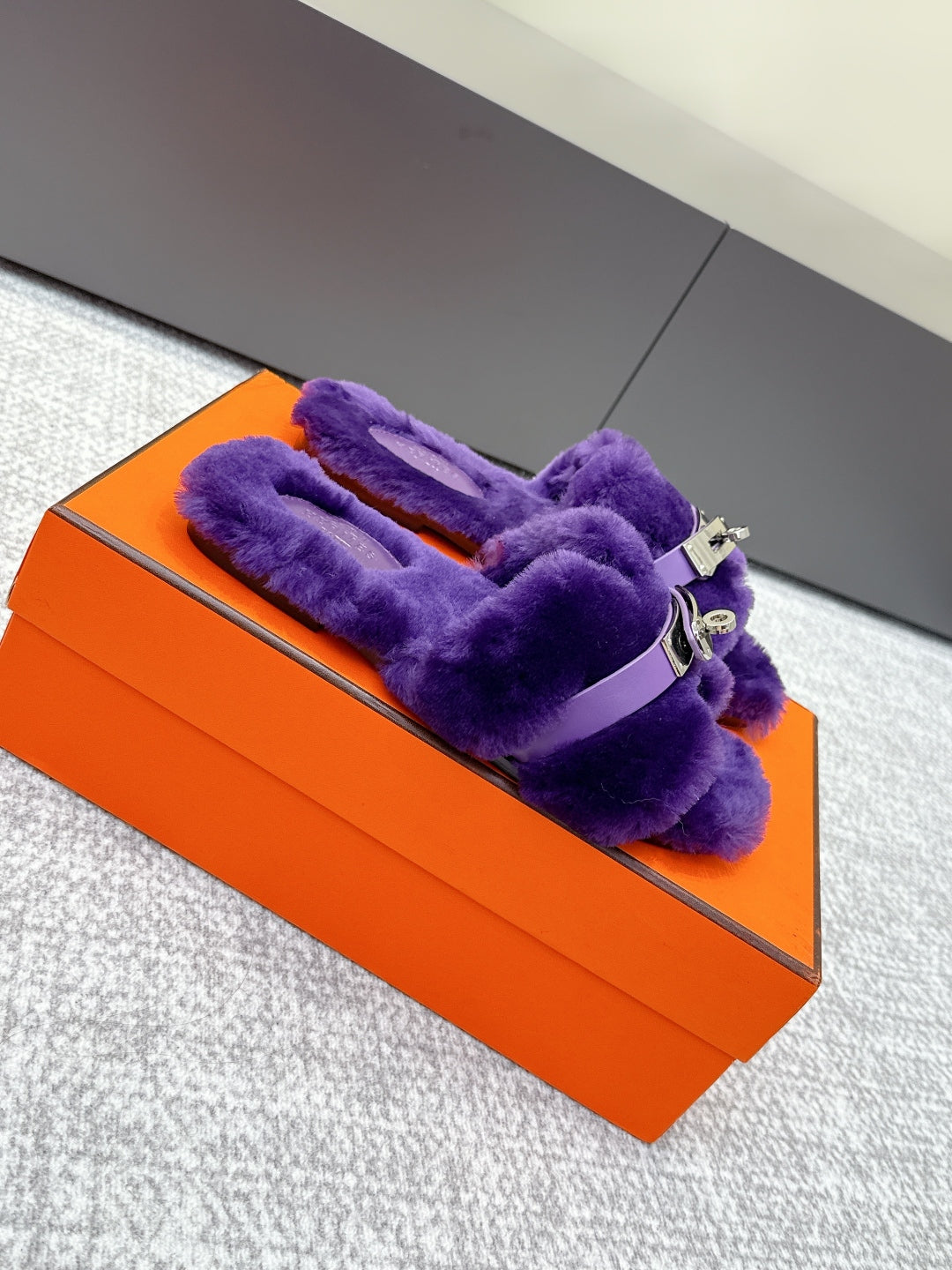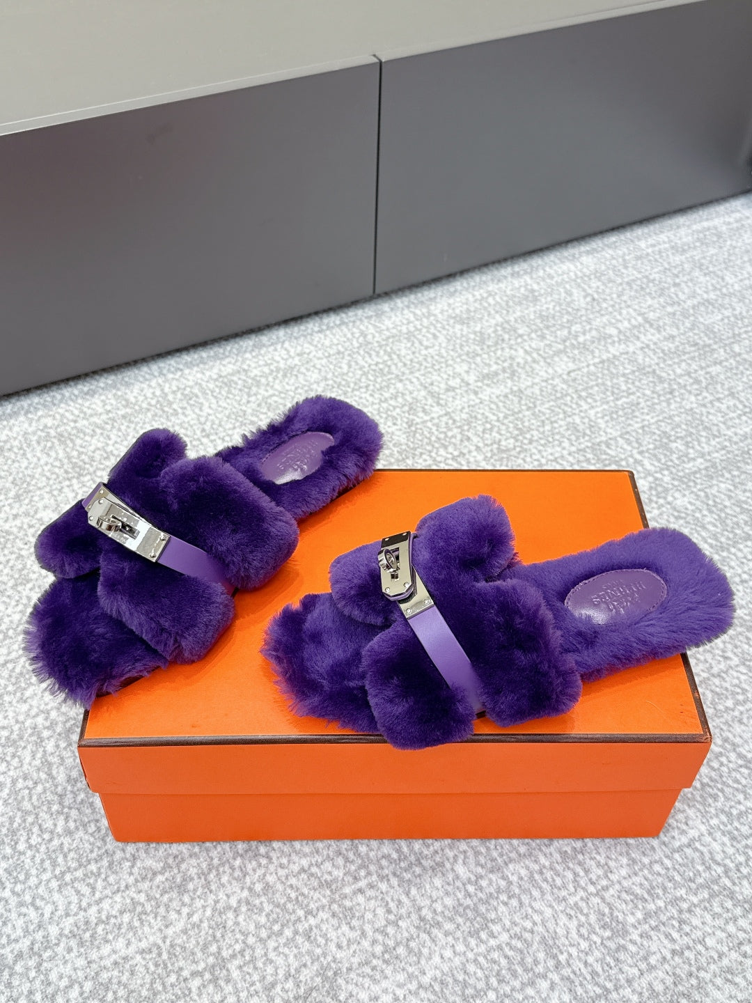 HM 25s H Shaped Slipper with Buckle Purple Shearling 462191