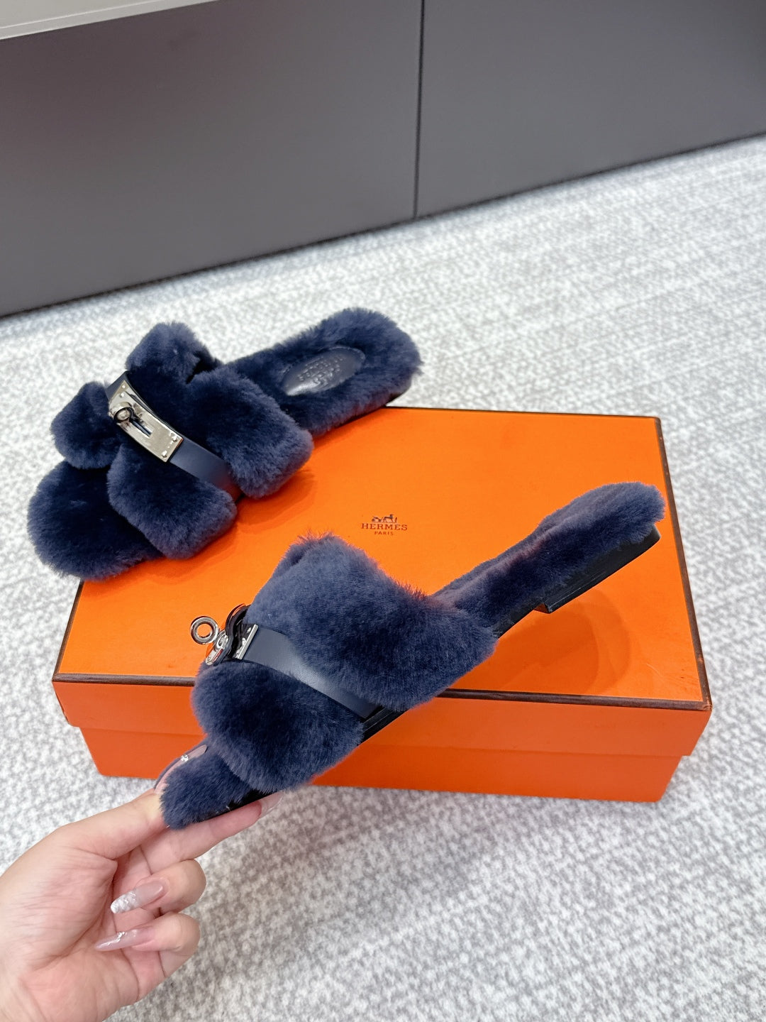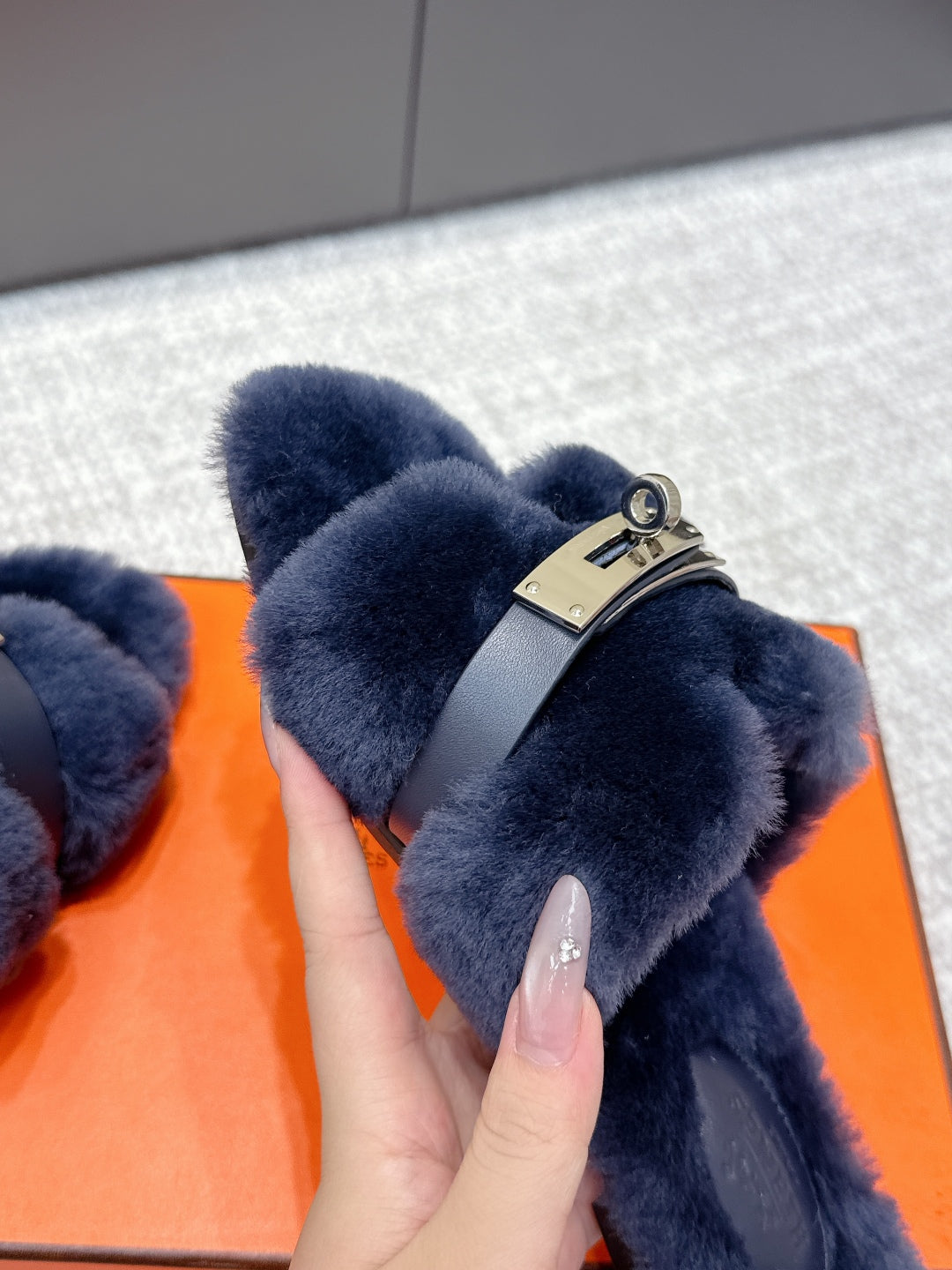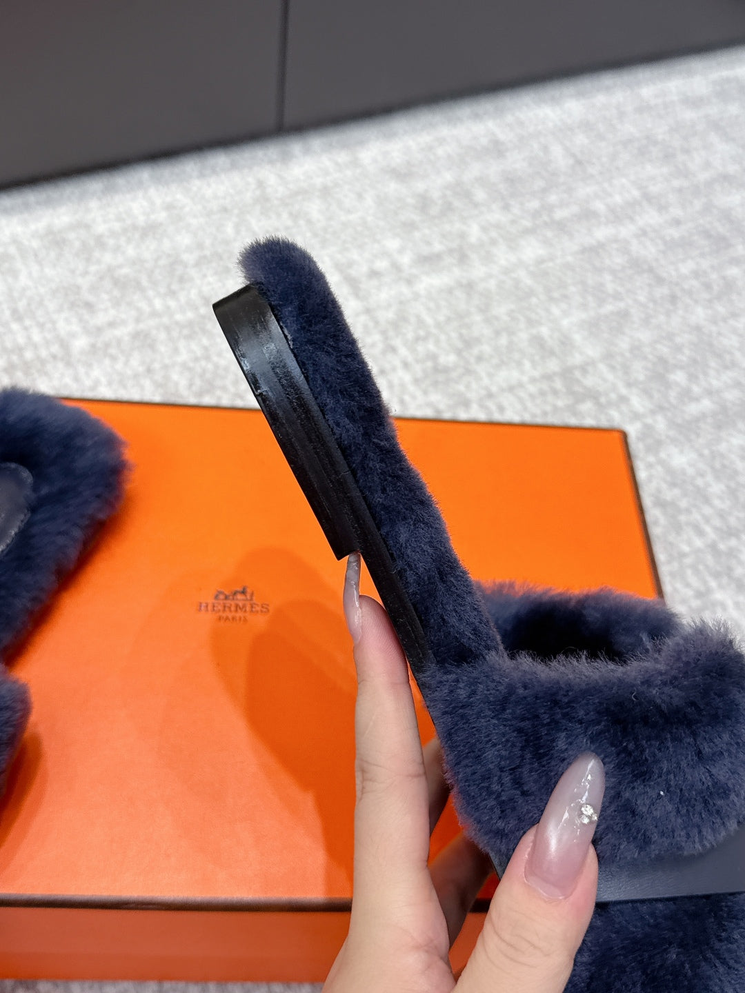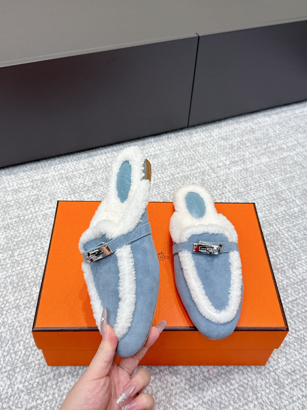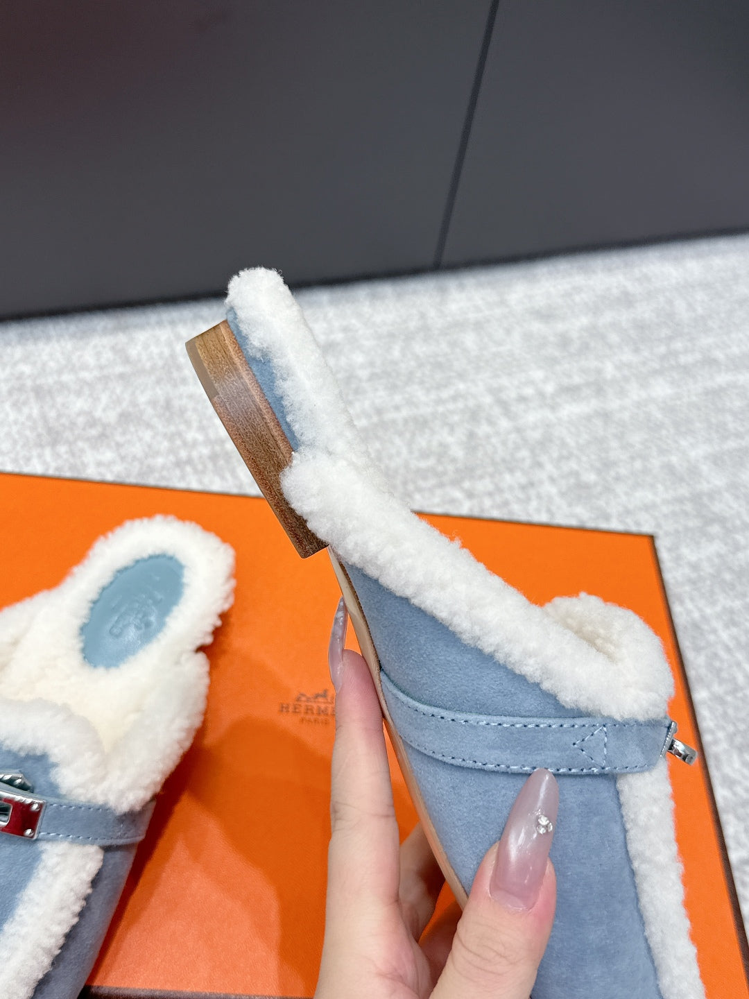 HM 25ss Oz Mule Blue Suede And Shearling 461939
