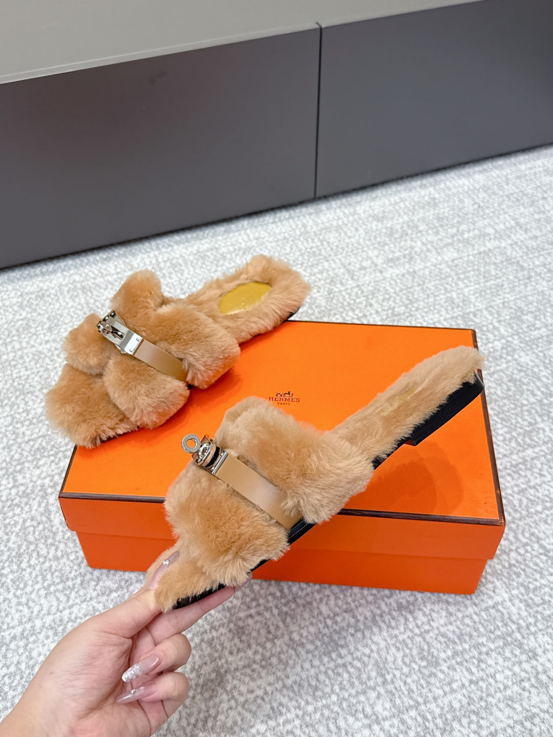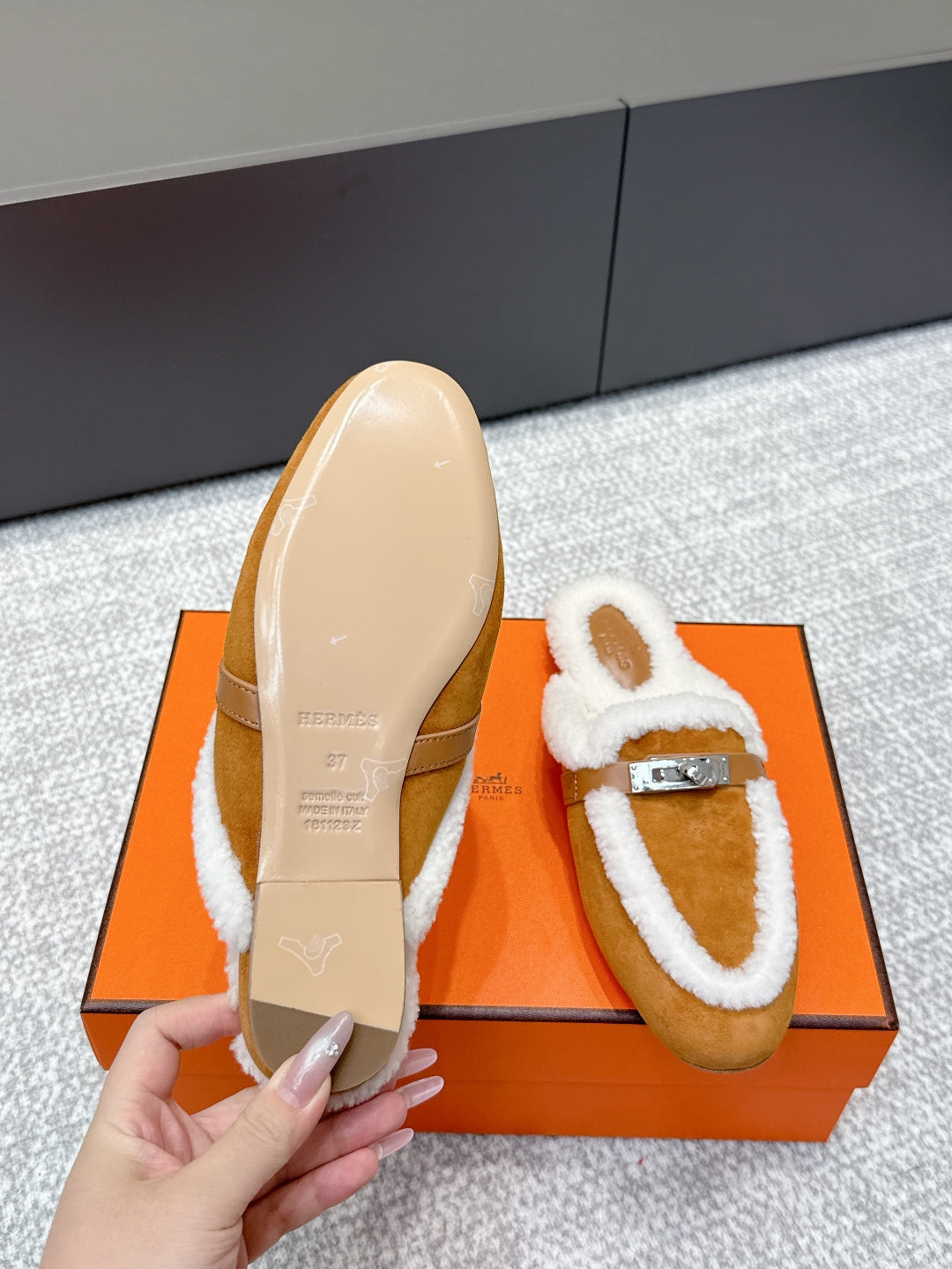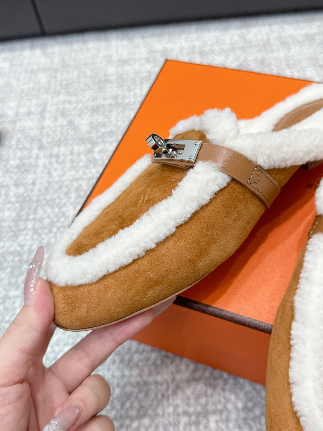 HM 25ss Oz Mule Brown Suede And Shearling 461940