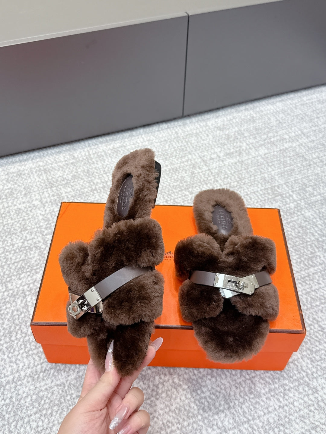 HM Slippers Classic Kelly Sliver Buckle Brown Wool 479617