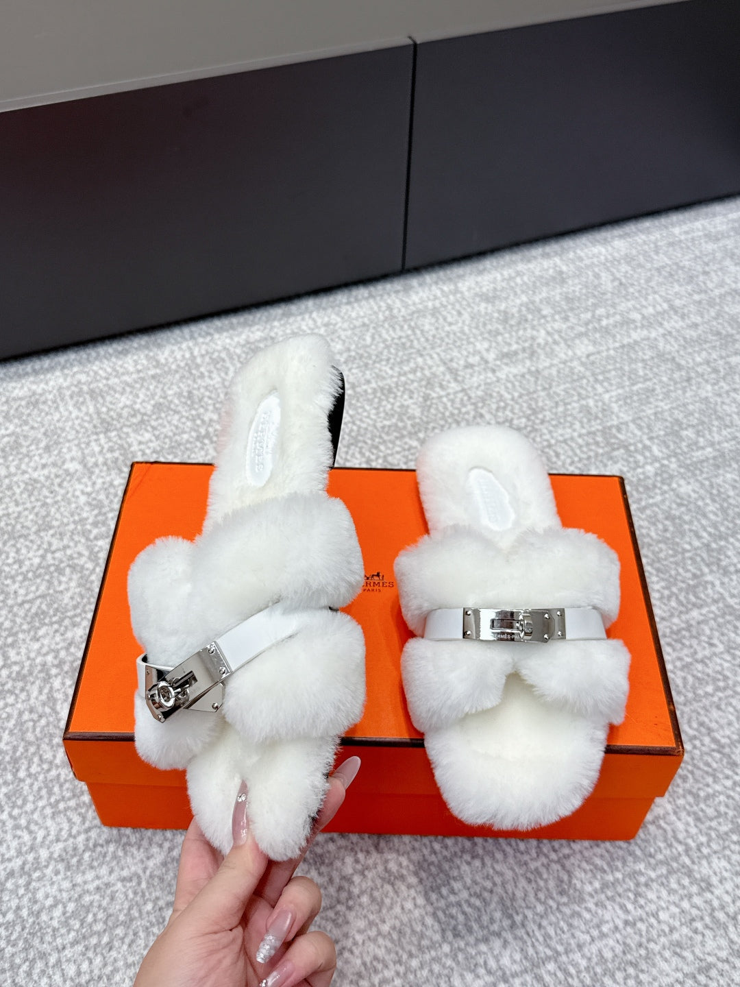 HM 25s H Shaped Slipper with Buckle White Shearling 462195