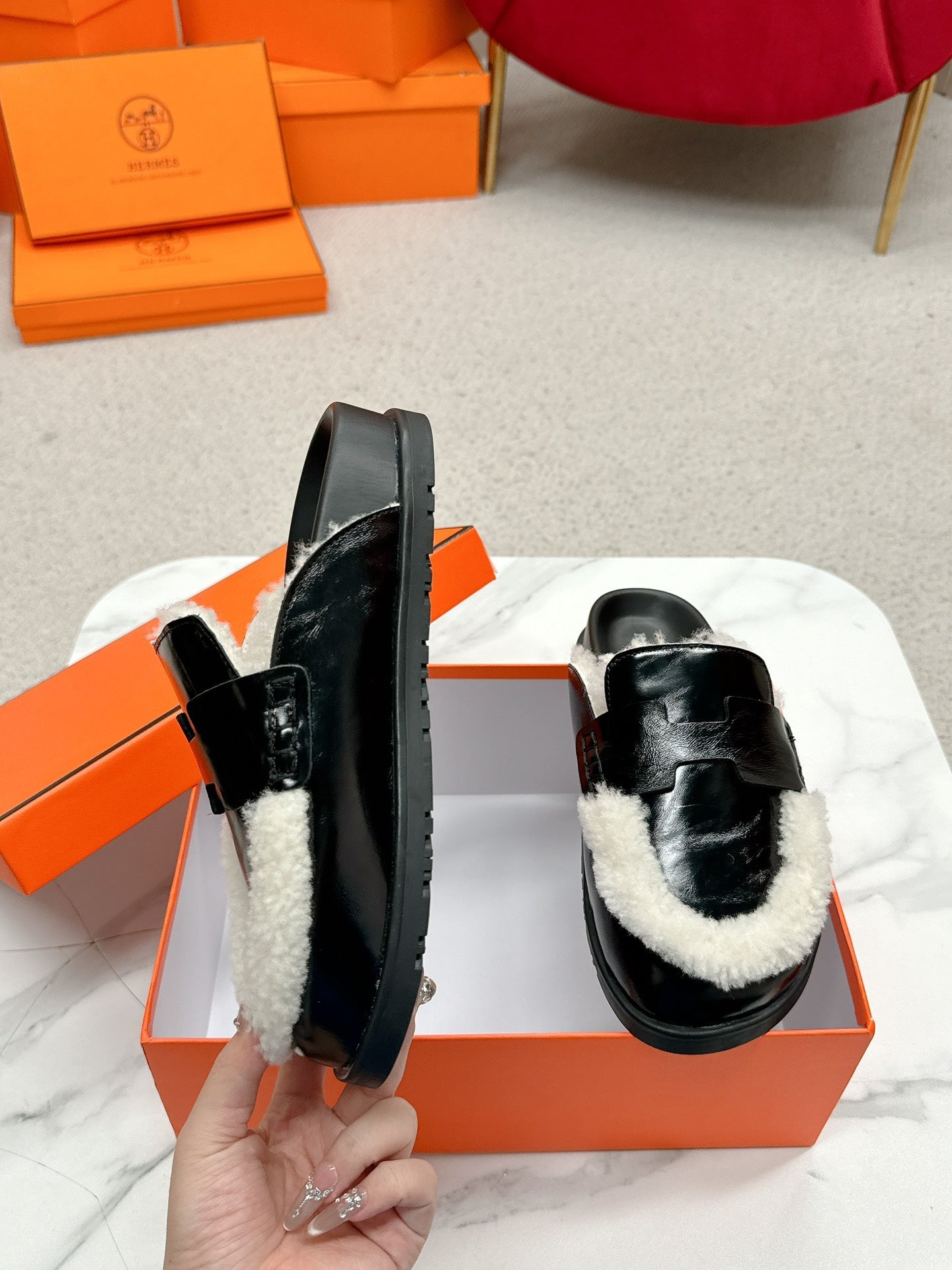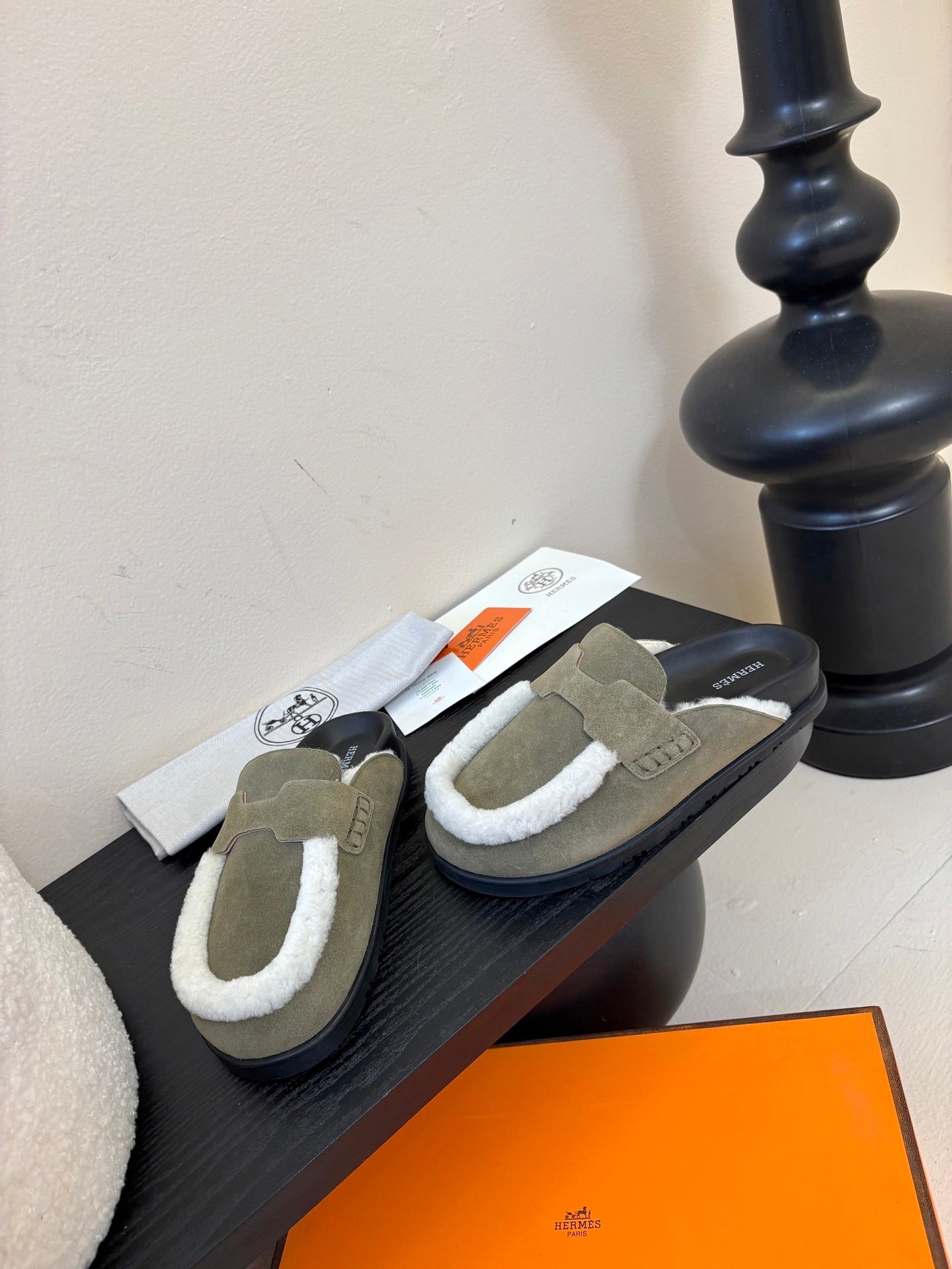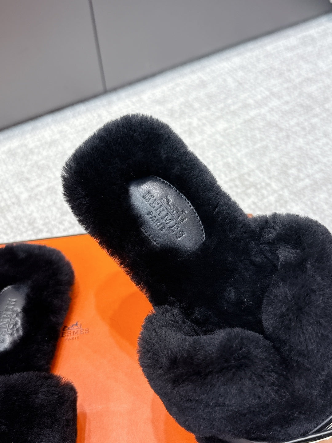 HM 25ss Oz Mule Black Goatskin And Shearling 461941