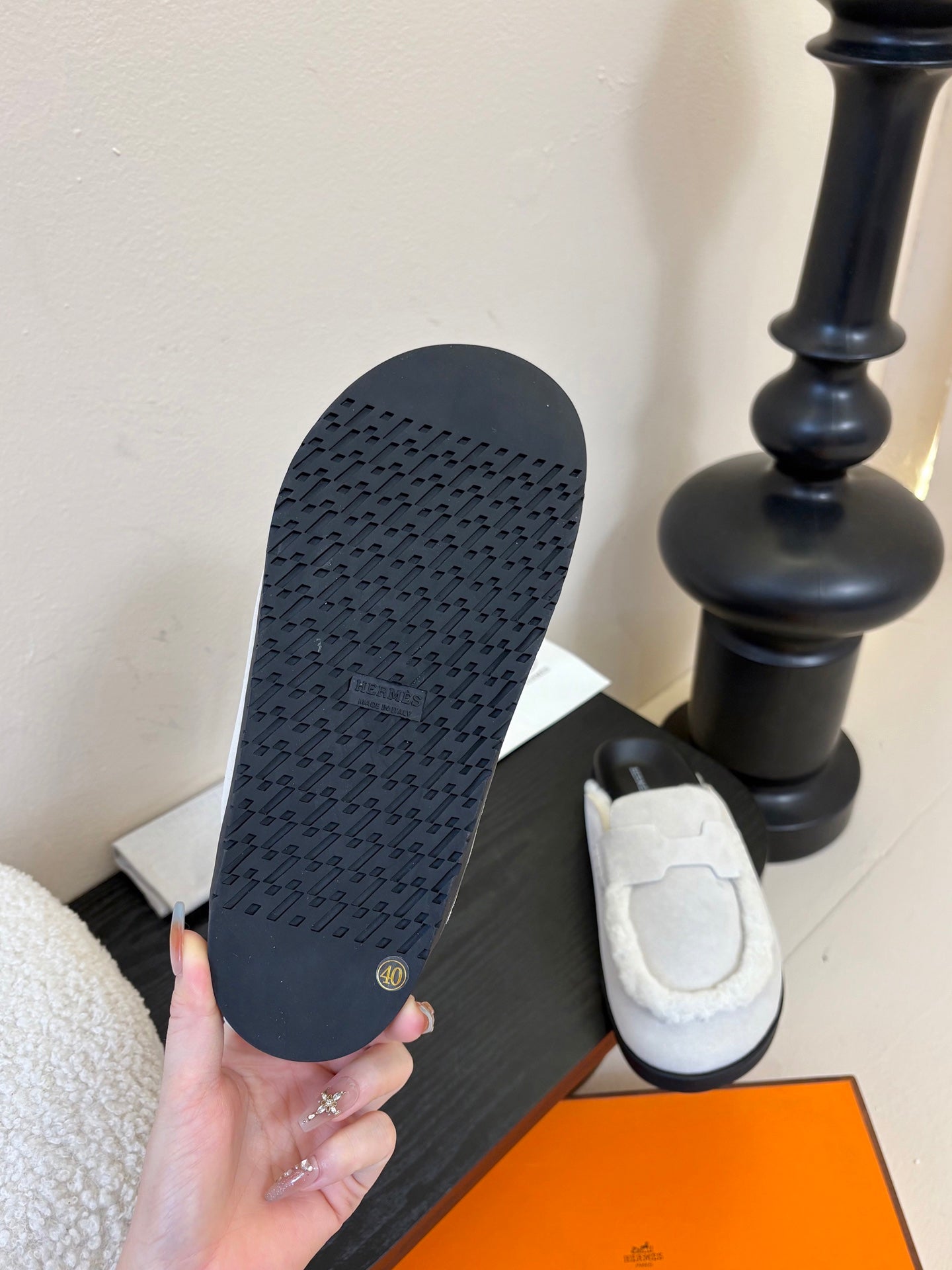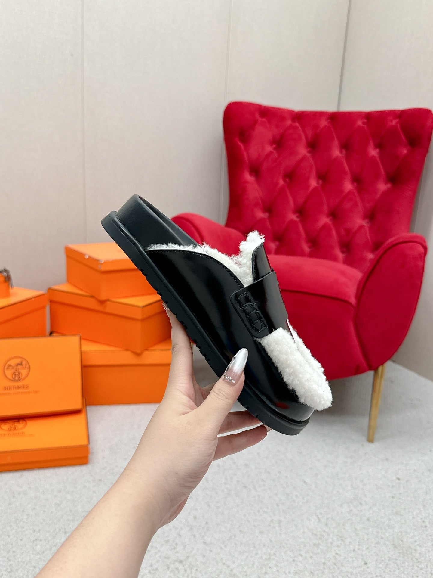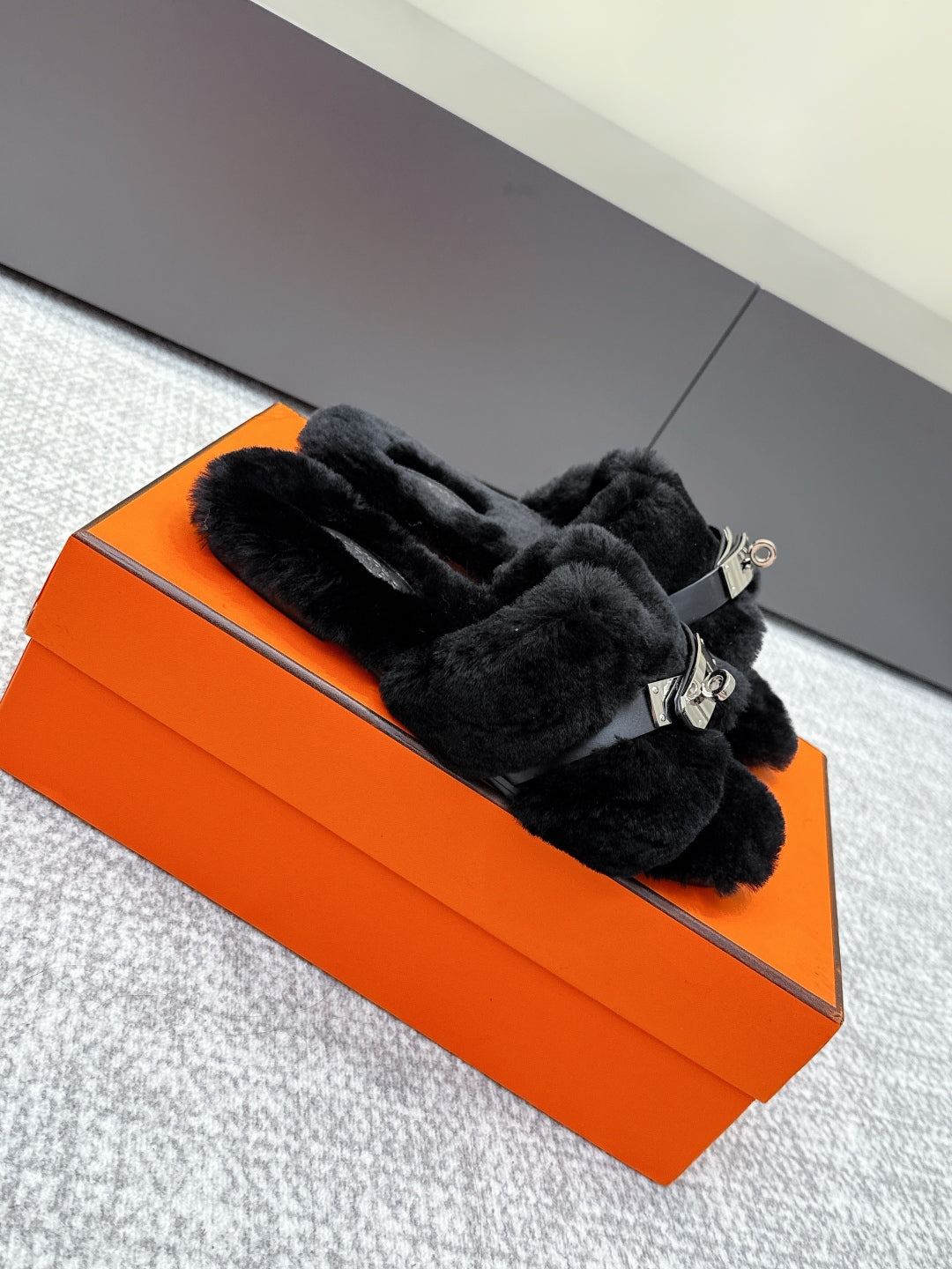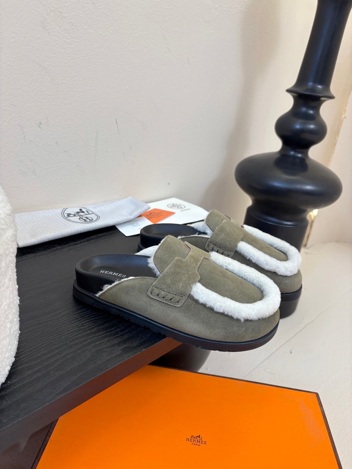 HM 25ss Oz Mule Black Goatskin And Shearling 461941