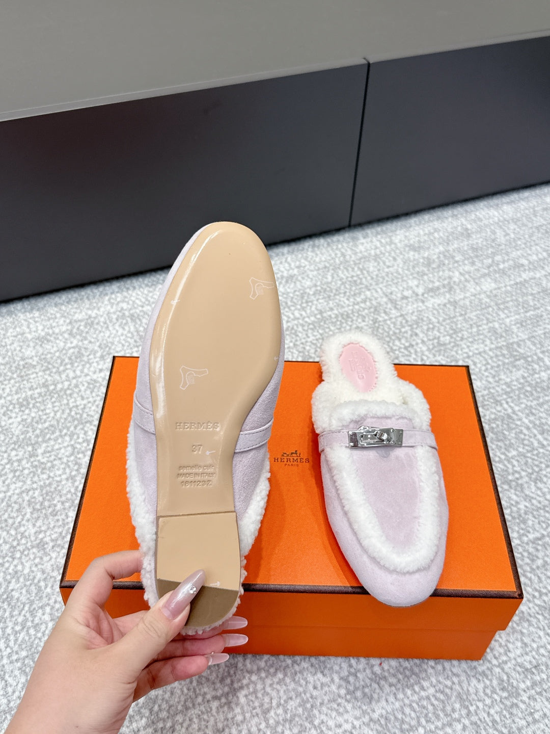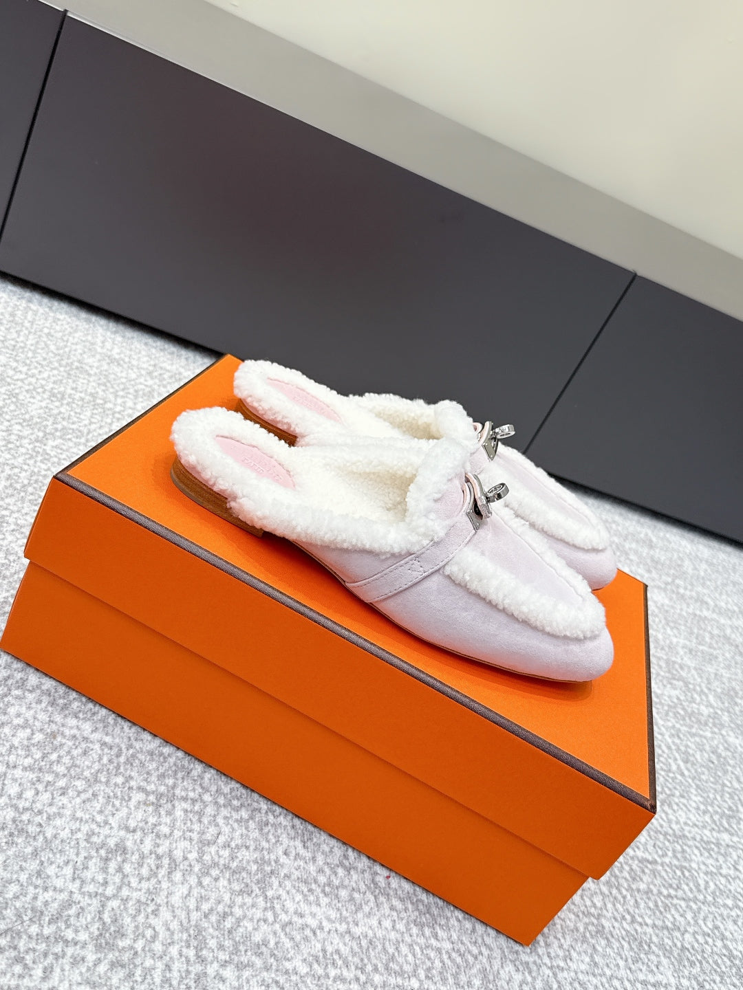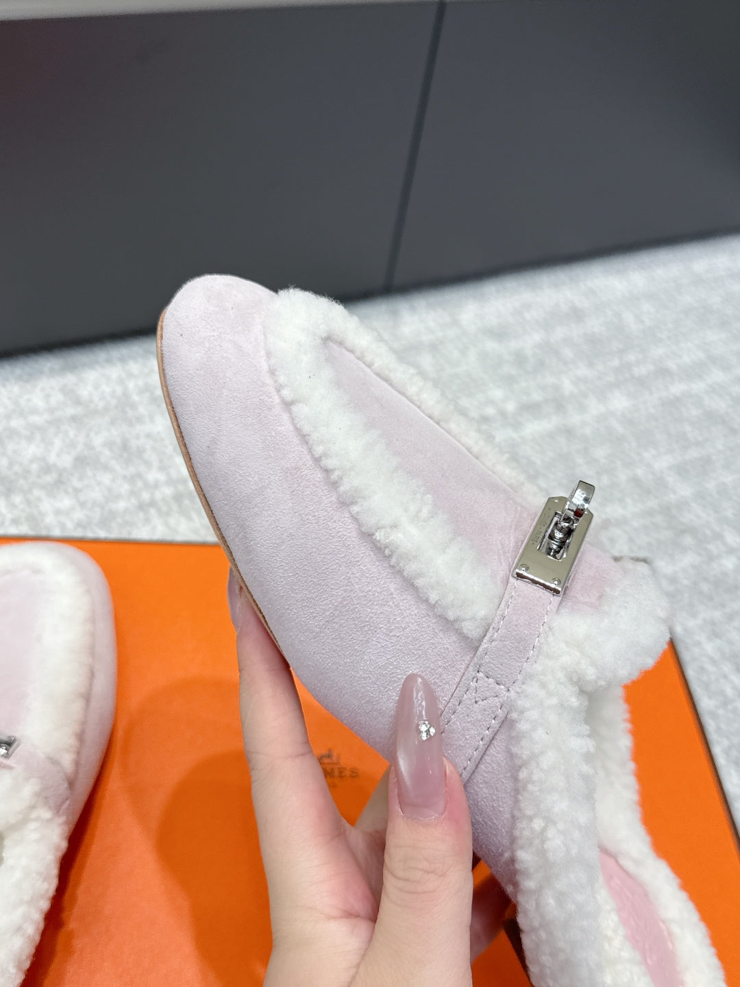 HM 25ss Oz Mule Light Rose Suede And Shearling 461938