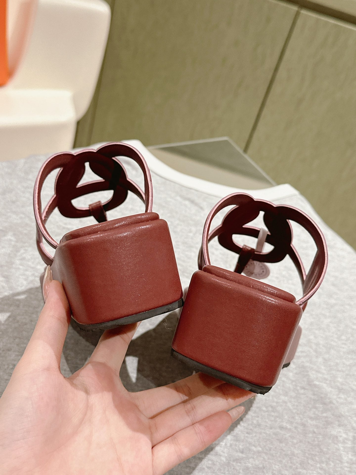 Gigi 50 Sandal Brown Muted Pink Calfskin 445330