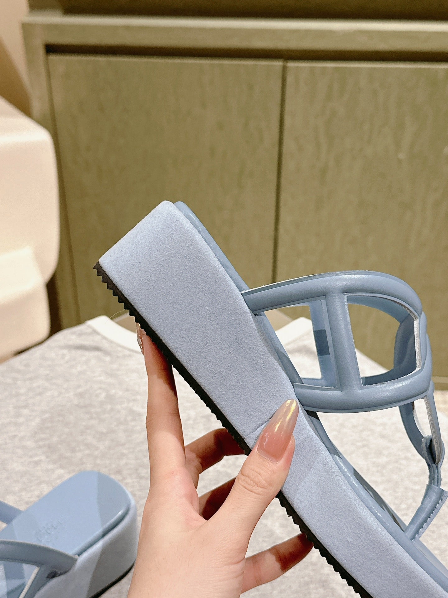 HM slippers birkenstocks olive green suede 478433