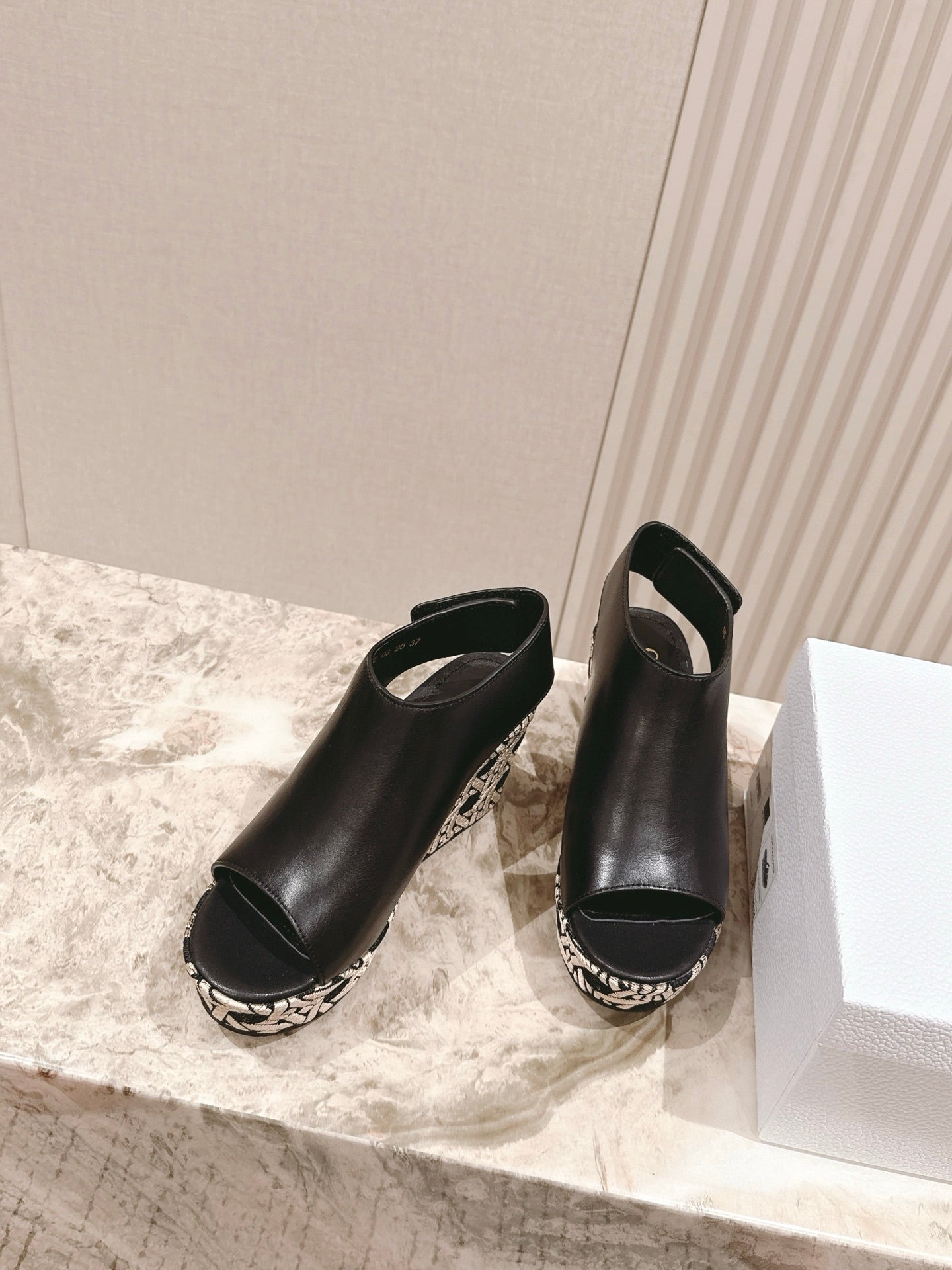 CD Attitude Wedge Sandal 85mm Black Calfskin 483087